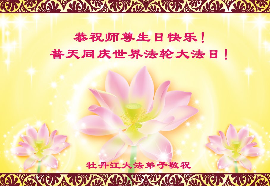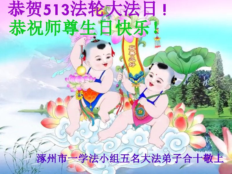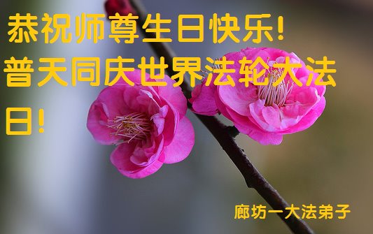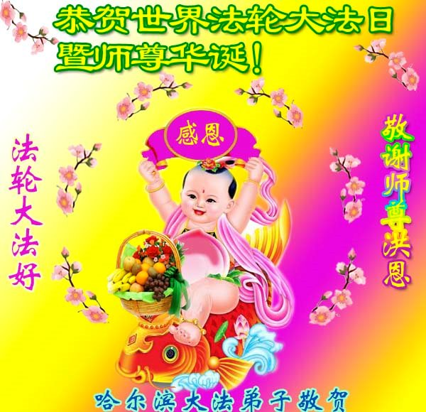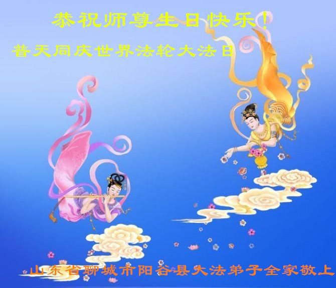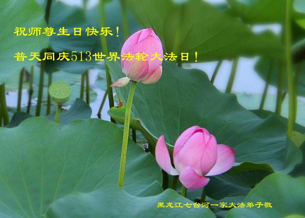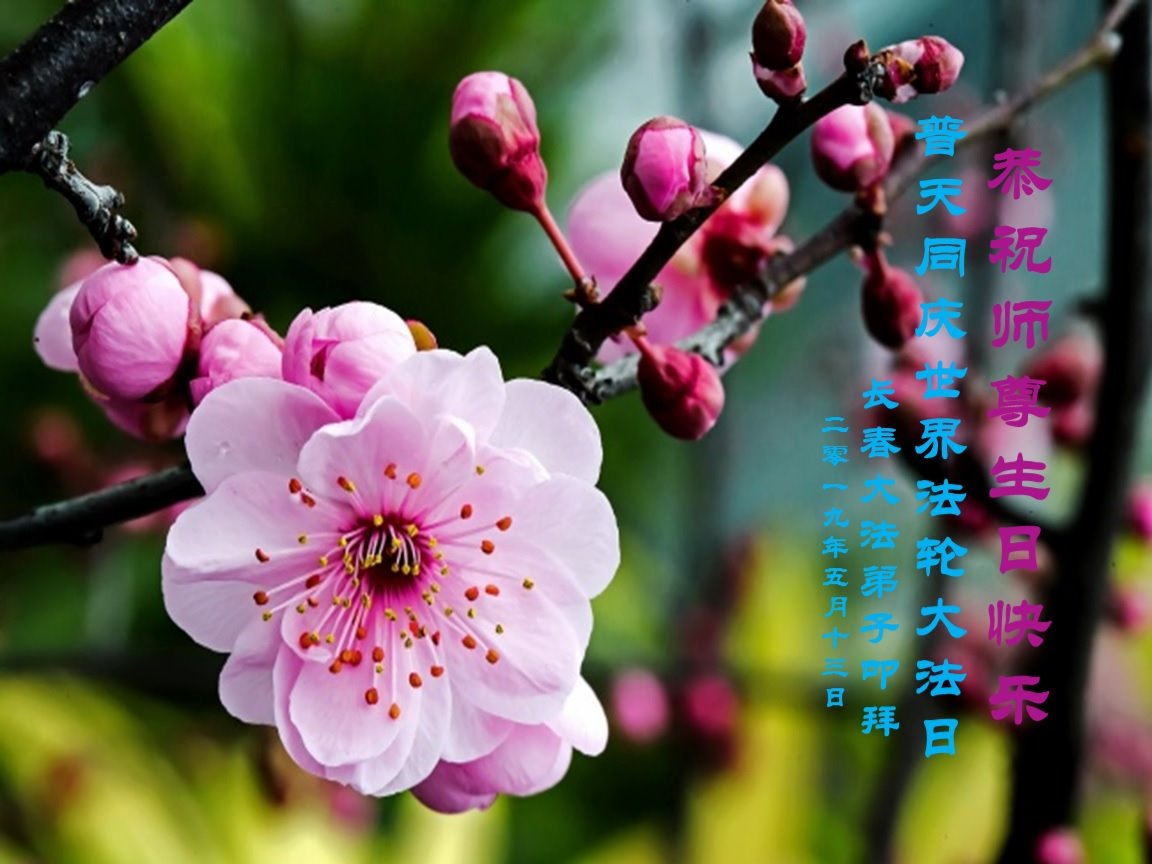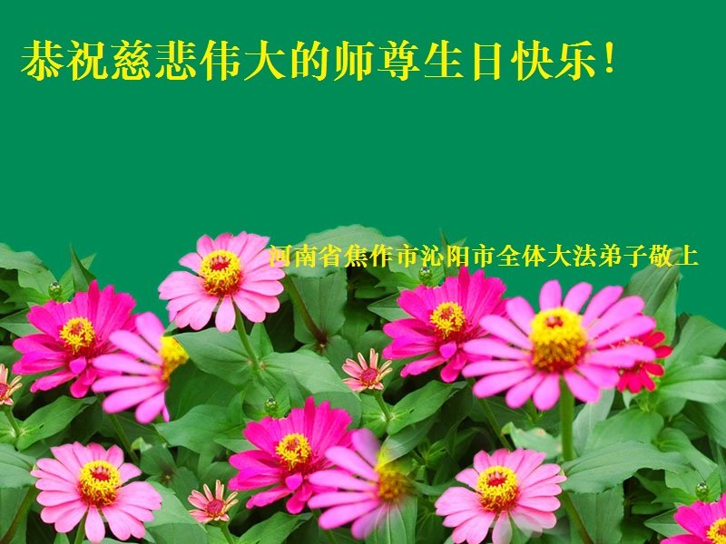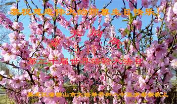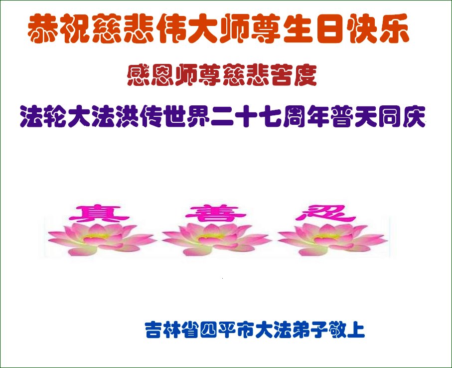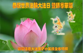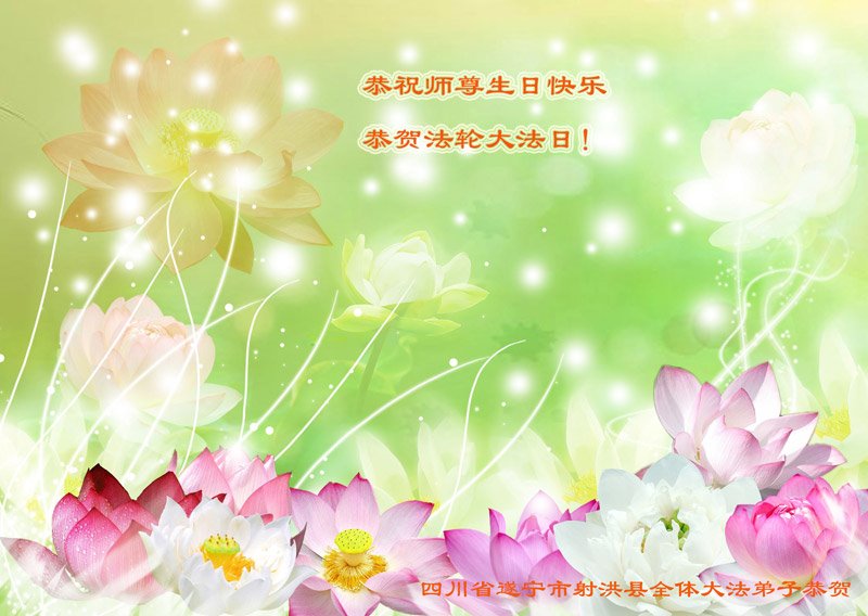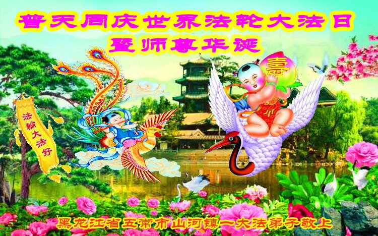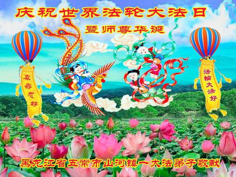“五·一三”世界法轮大法日暨慈悲伟大师父的华诞到了!我们一家同修三人及我们现在的学法小组全体弟子在此衷心恭祝慈悲伟大的师父生日快乐!发自内心的感恩慈悲无量的伟大的师父!是您的慈悲救度,弟子们才有了今天。