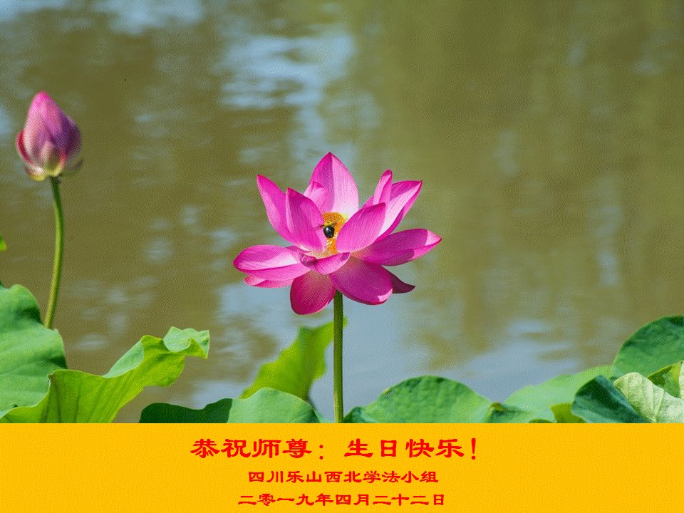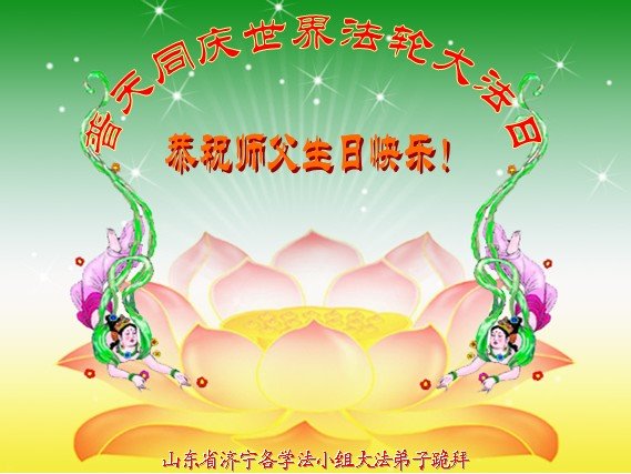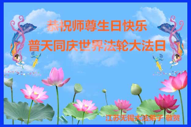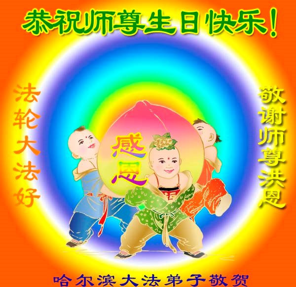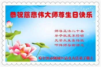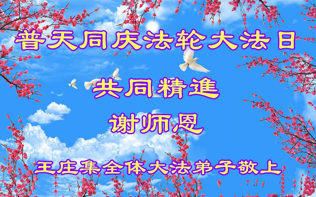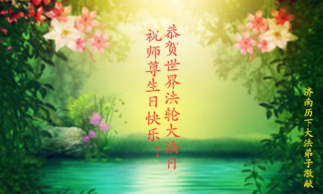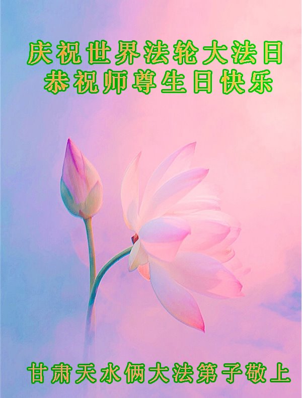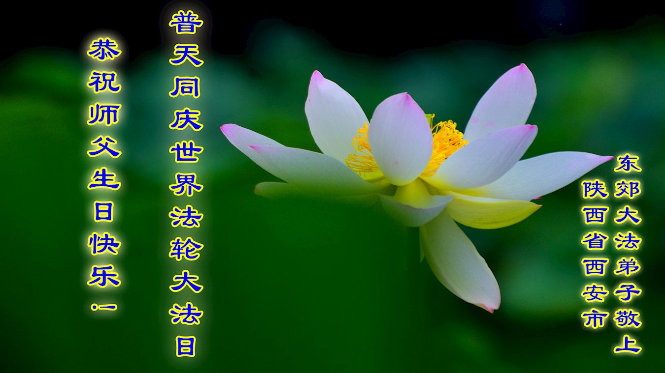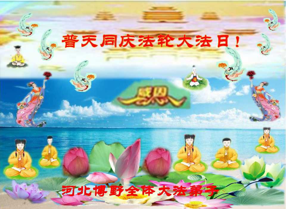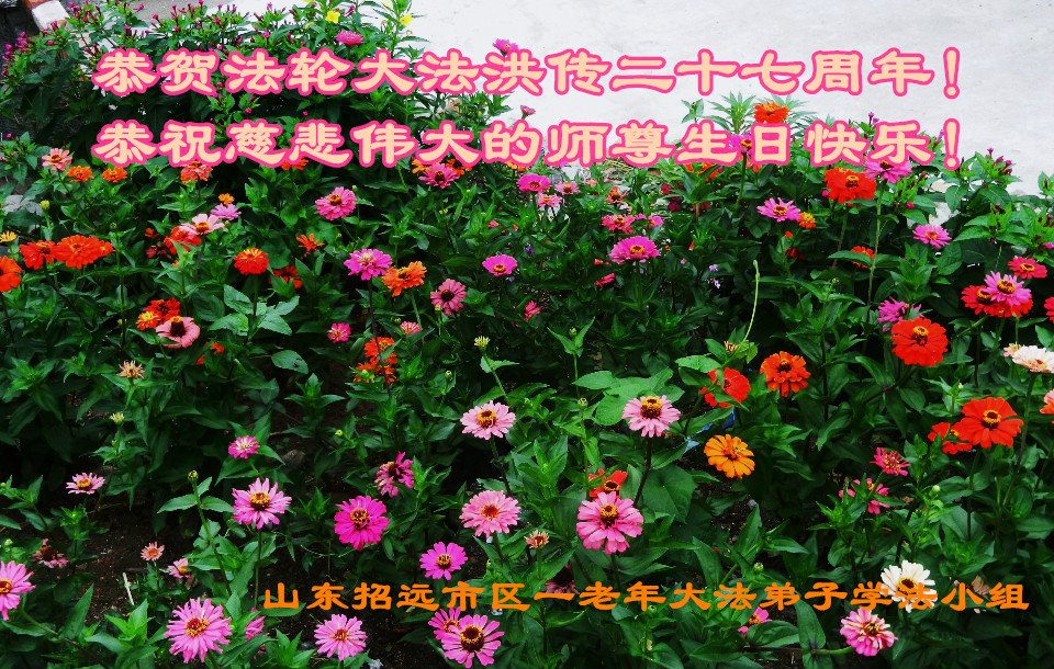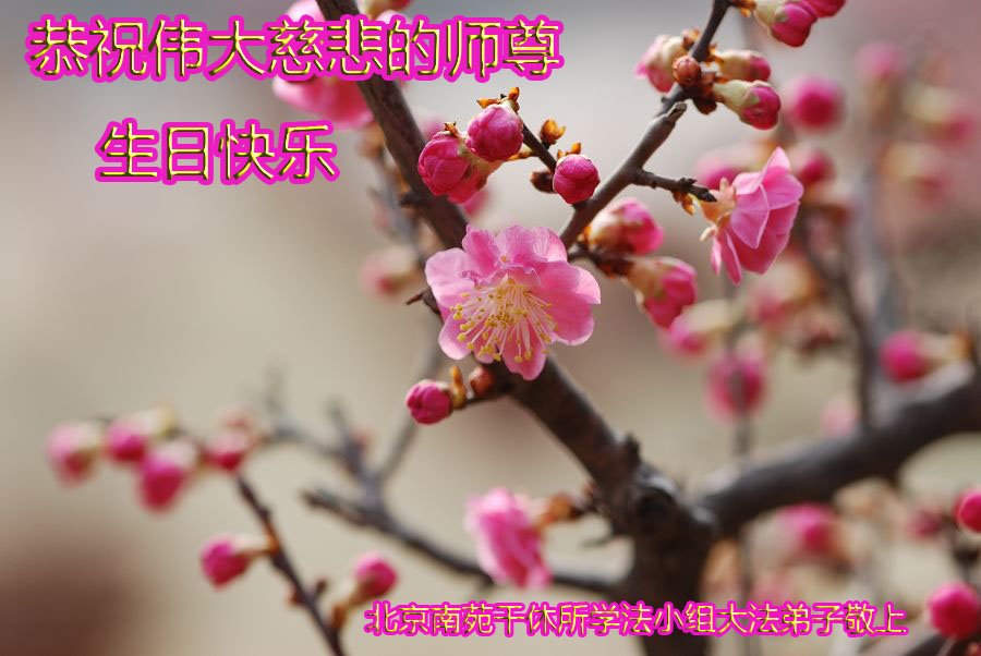 “五·一三”世界法轮大法日暨慈悲伟大师父的华诞到了!我们一家同修三人及我们现在的学法小组全体弟子在此衷心恭祝慈悲伟大的师父生日快乐!发自内心的感恩慈悲无量的伟大的师父!是您的慈悲救度,弟子们才有了今天。