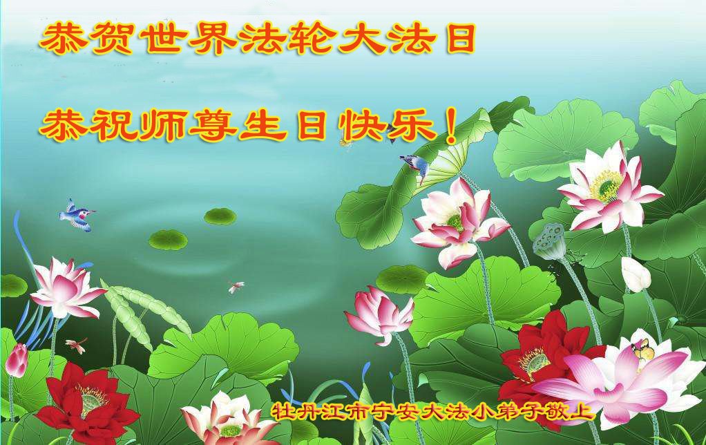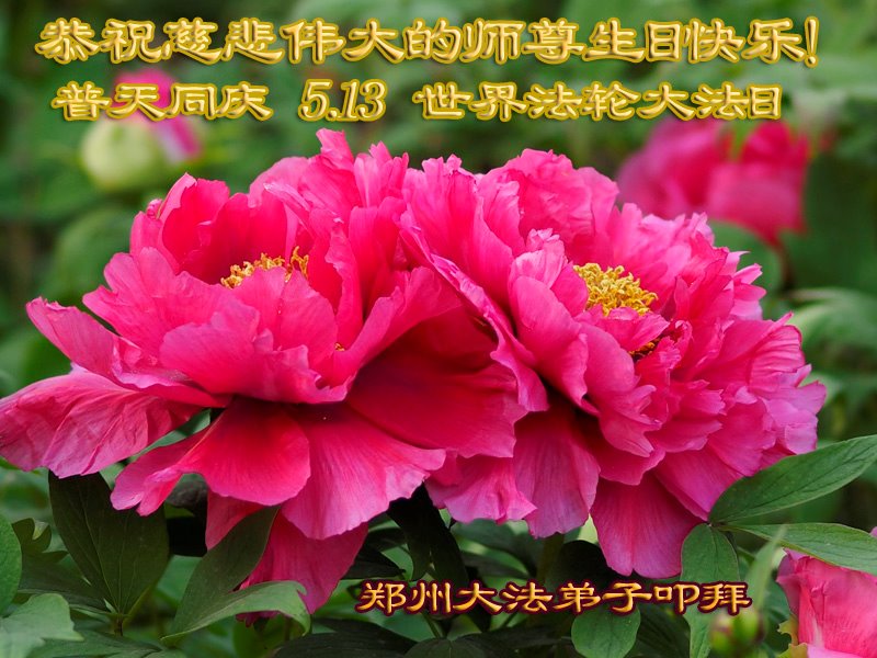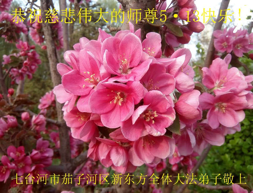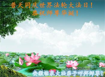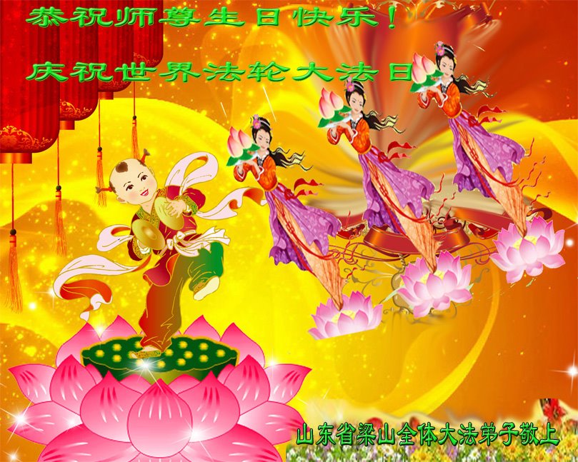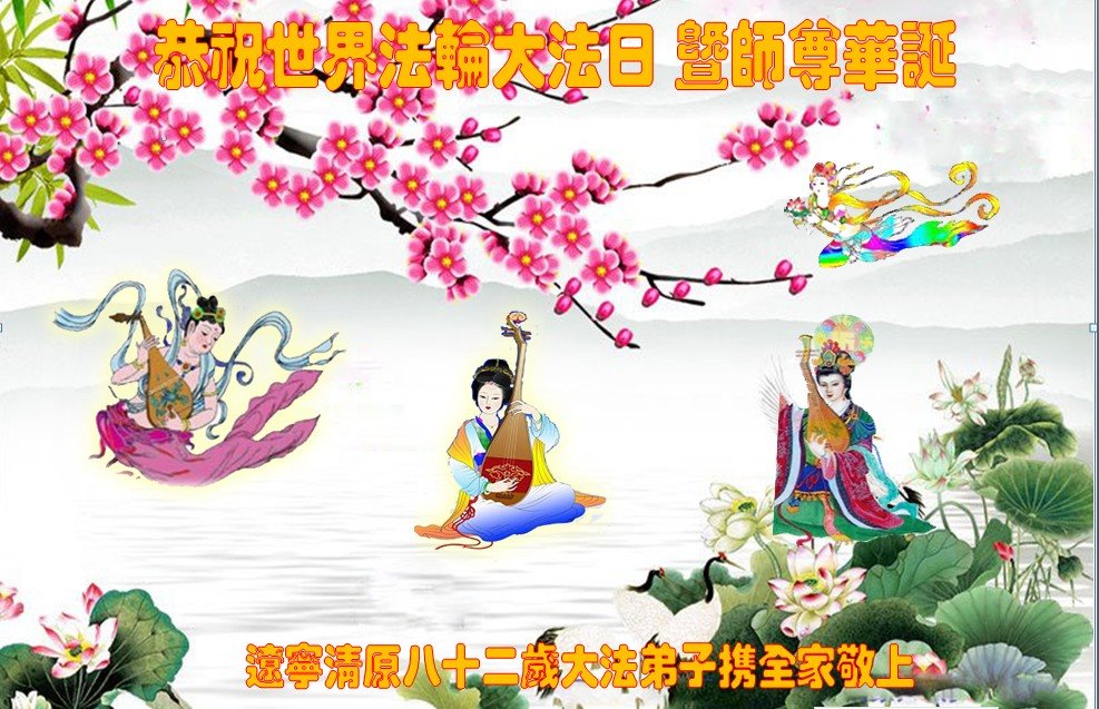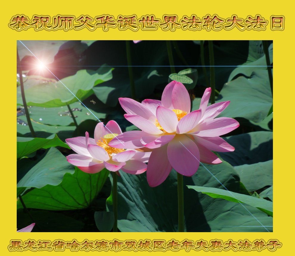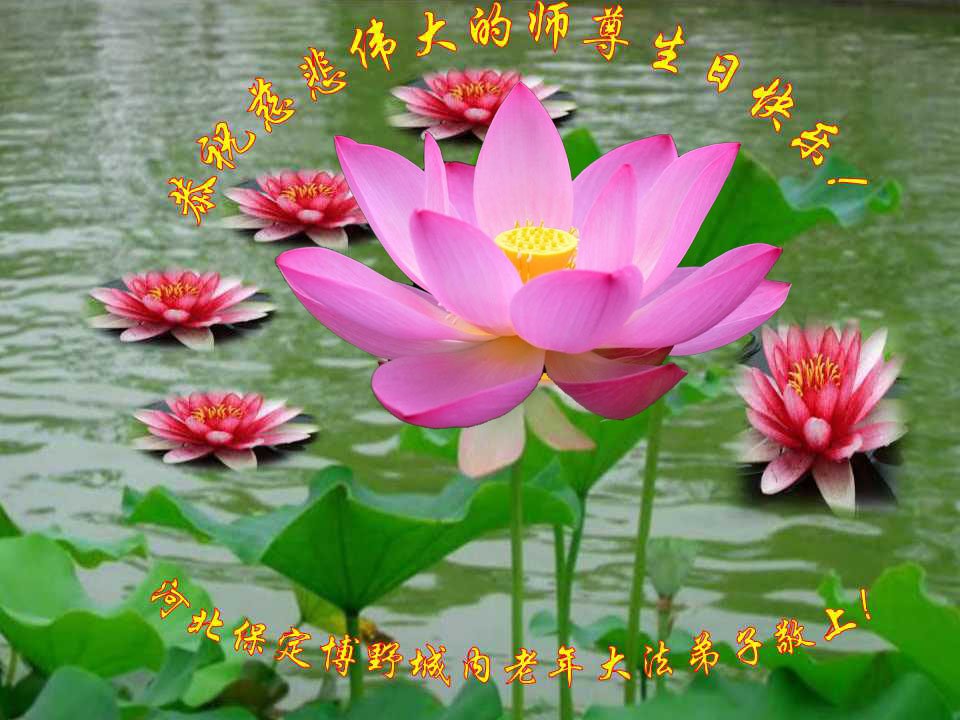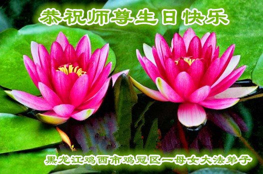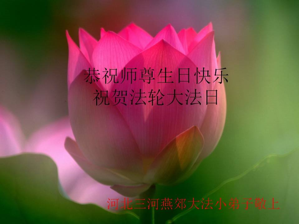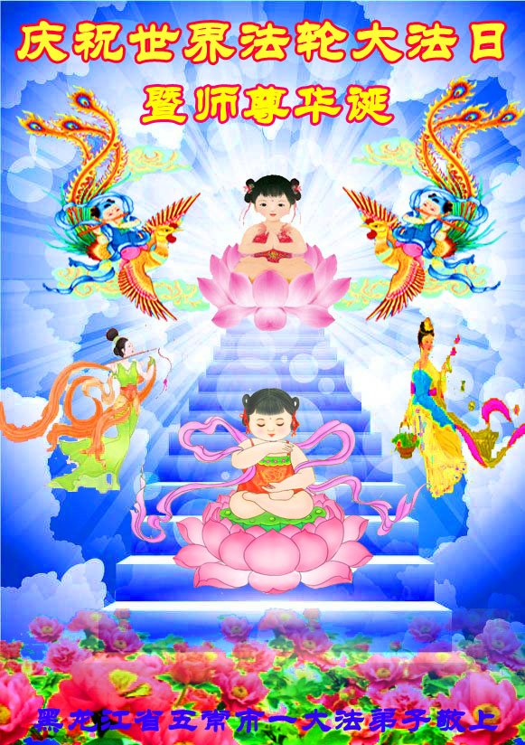 “五·一三”世界法轮大法日暨慈悲伟大师父的华诞到了!我们一家同修三人及我们现在的学法小组全体弟子在此衷心恭祝慈悲伟大的师父生日快乐!发自内心的感恩慈悲无量的伟大的师父!是您的慈悲救度,弟子们才有了今天。
