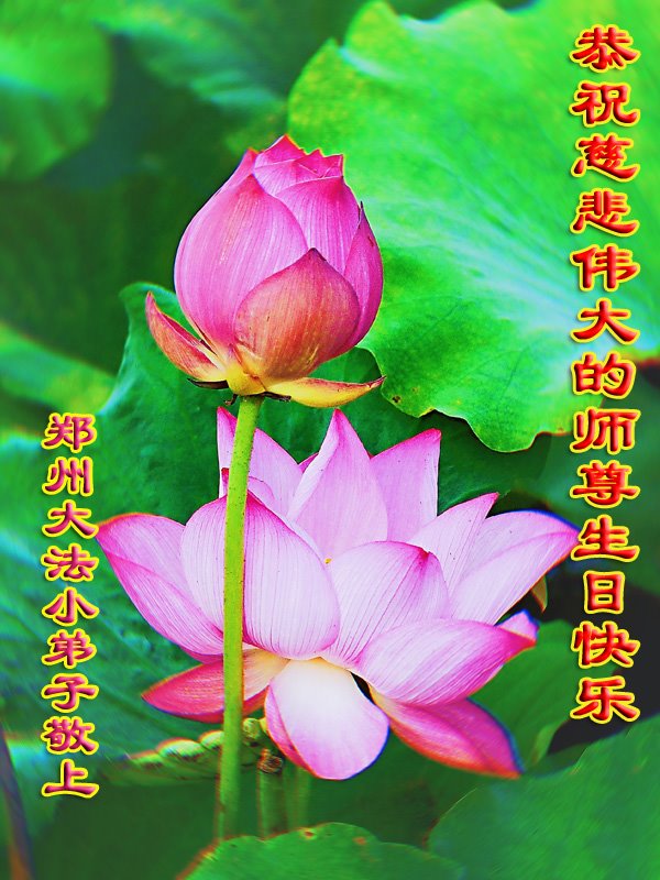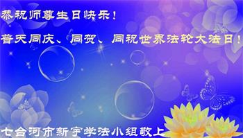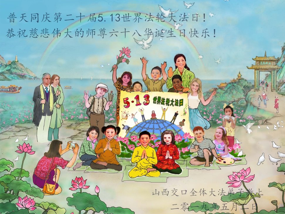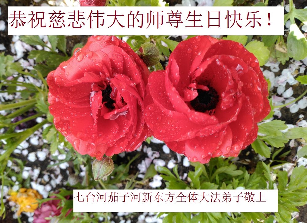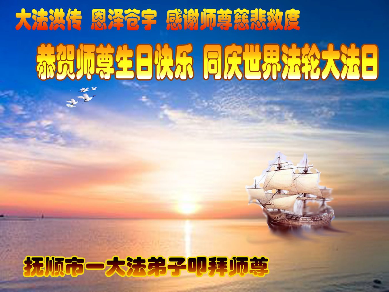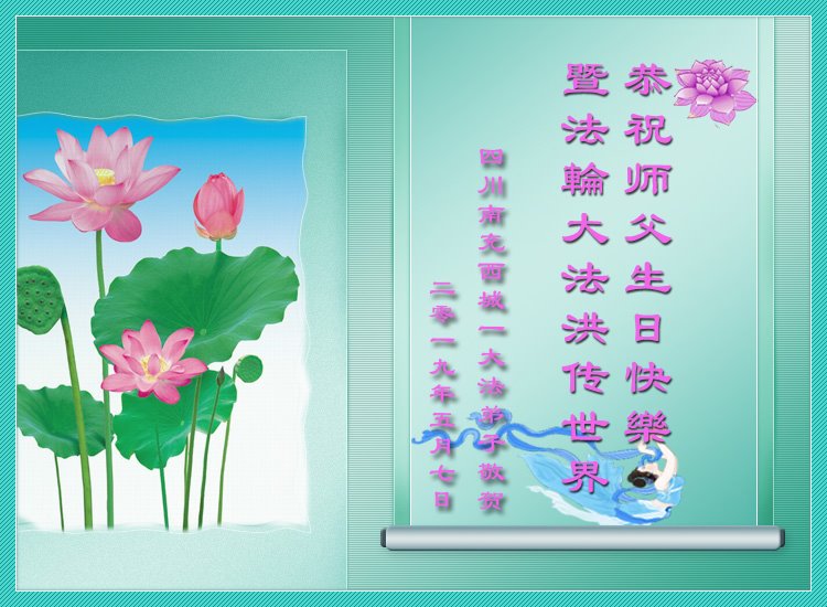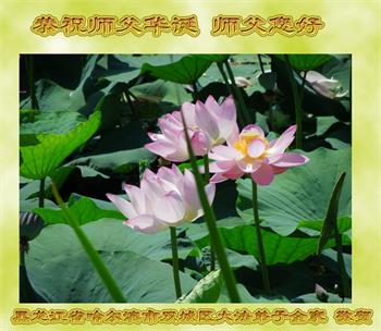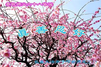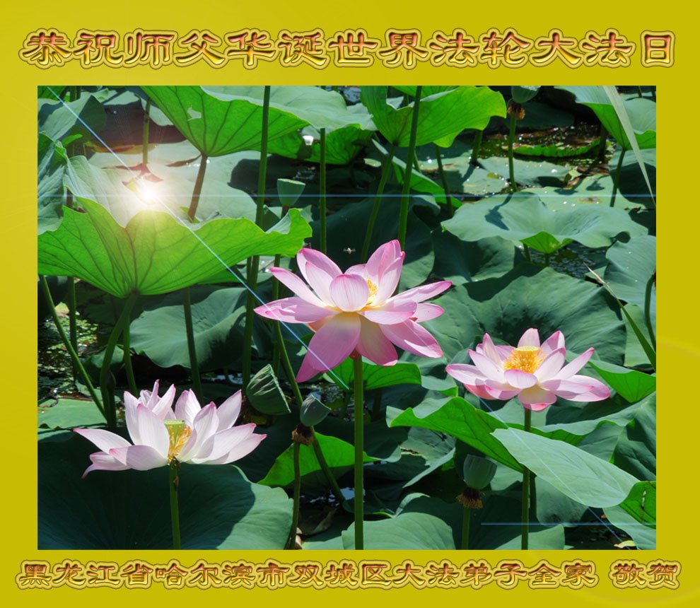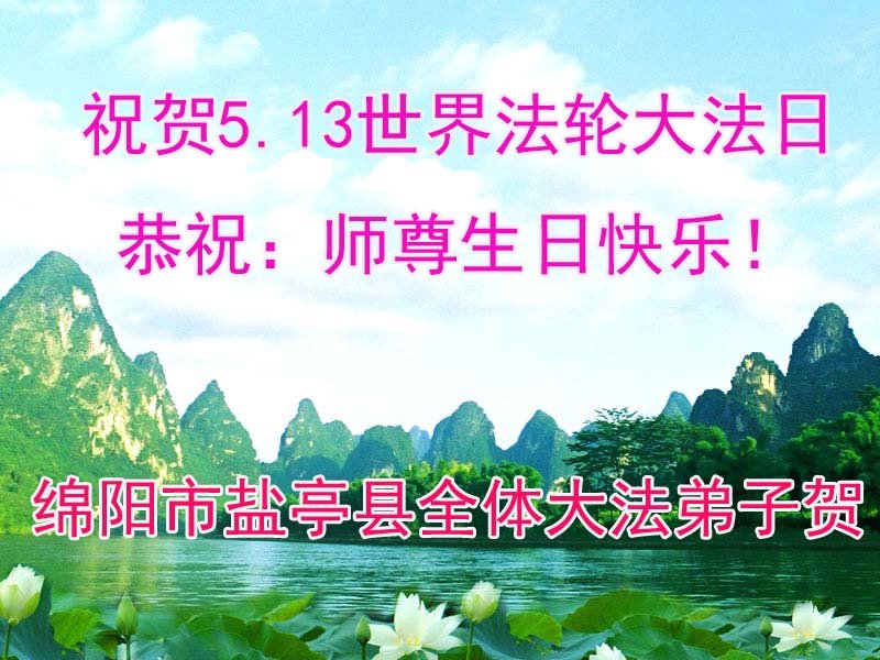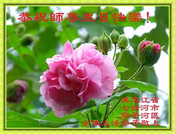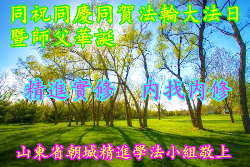 “五·一三”世界法轮大法日暨慈悲伟大师父的华诞到了!我们一家同修三人及我们现在的学法小组全体弟子在此衷心恭祝慈悲伟大的师父生日快乐!发自内心的感恩慈悲无量的伟大的师父!是您的慈悲救度,弟子们才有了今天。