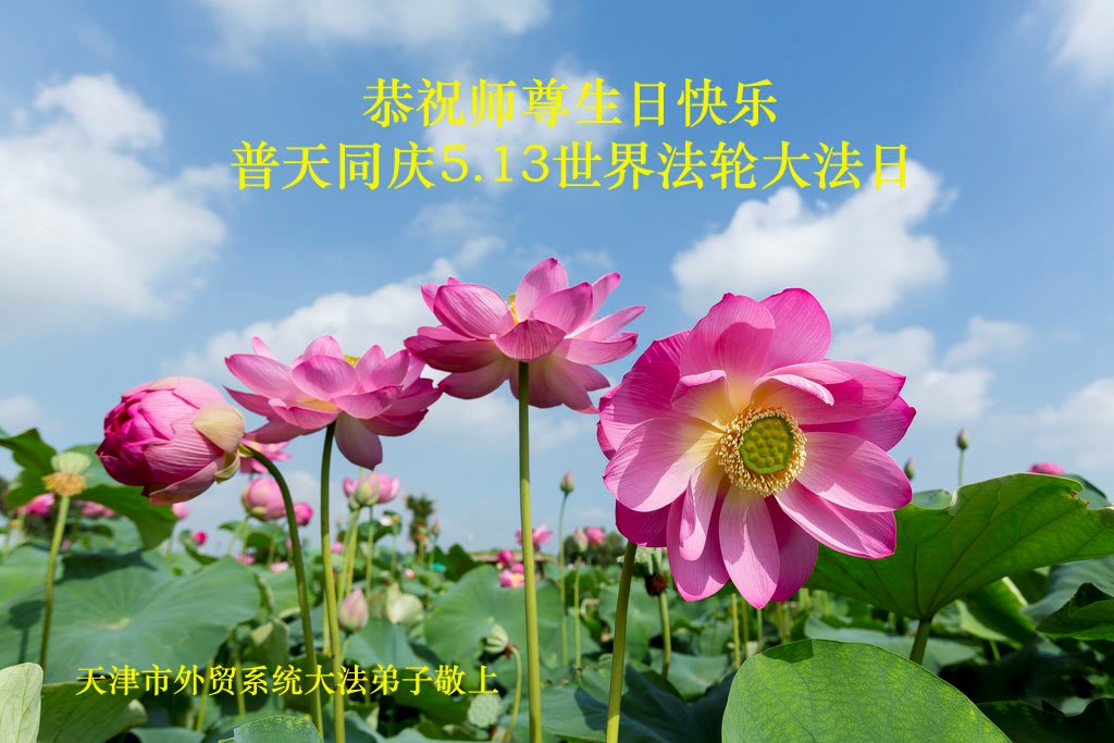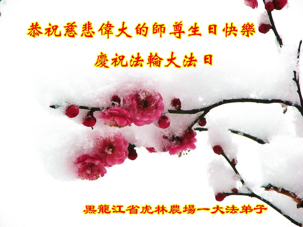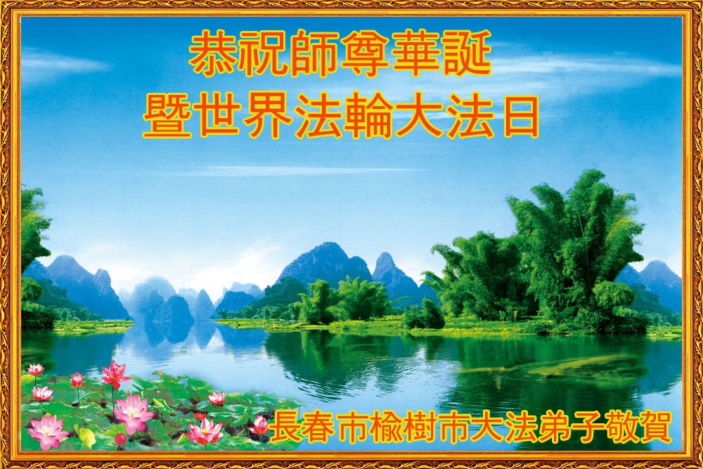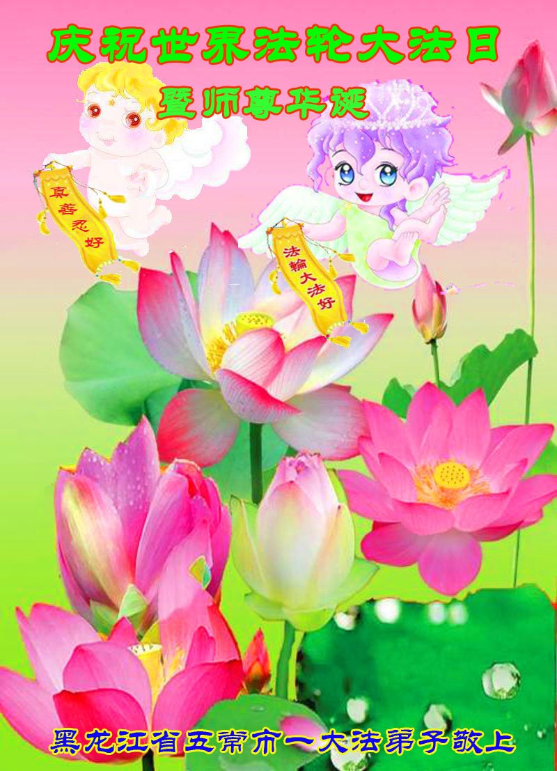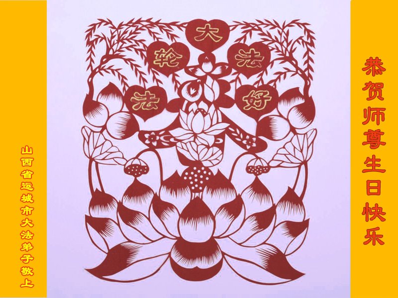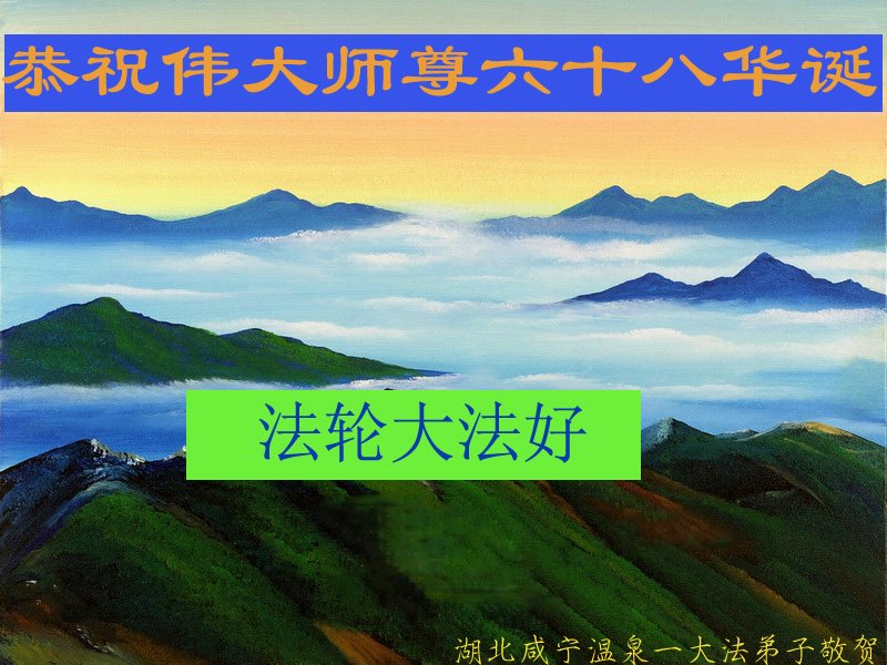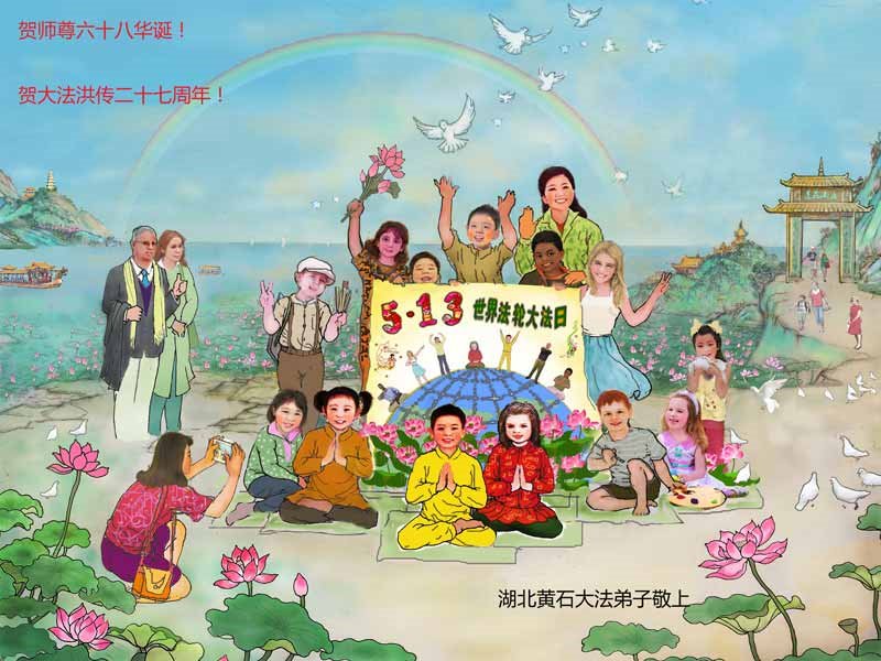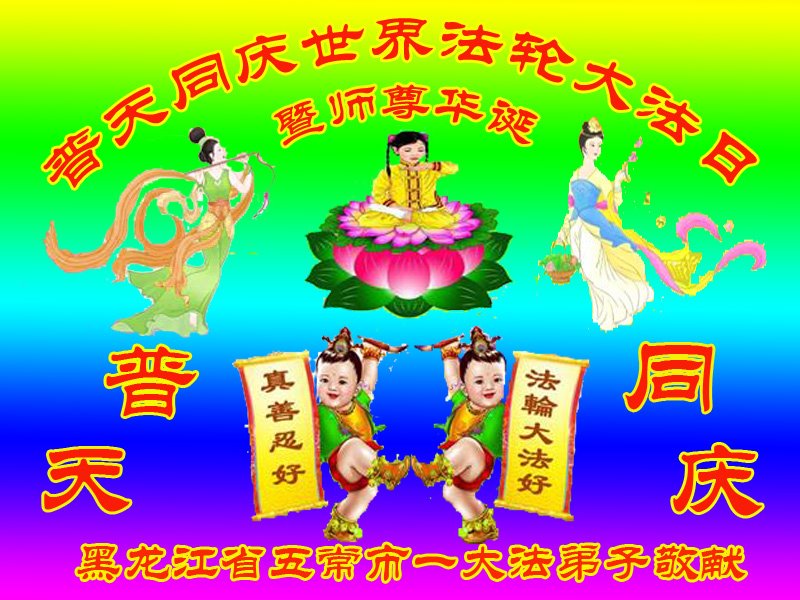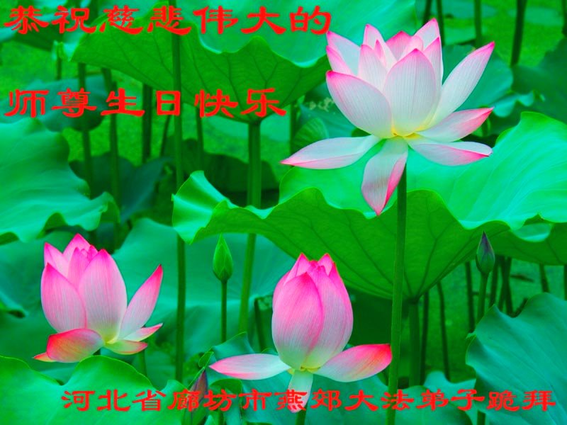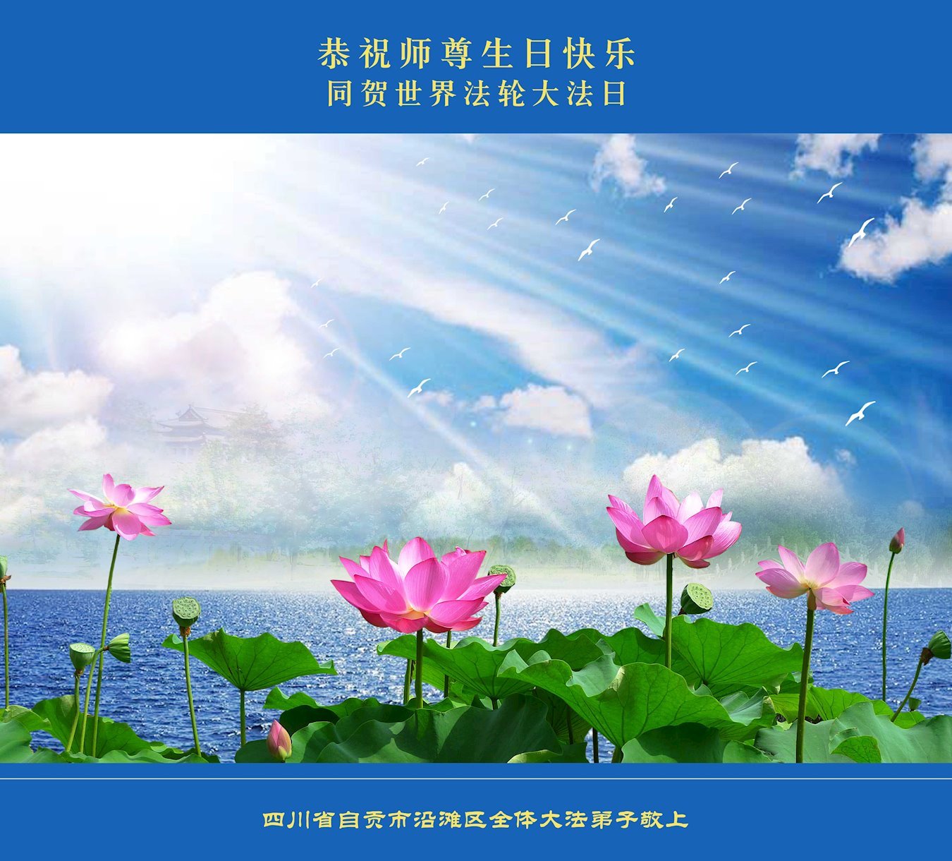 “五·一三”世界法轮大法日暨慈悲伟大师父的华诞到了!我们一家同修三人及我们现在的学法小组全体弟子在此衷心恭祝慈悲伟大的师父生日快乐!发自内心的感恩慈悲无量的伟大的师父!是您的慈悲救度,弟子们才有了今天。