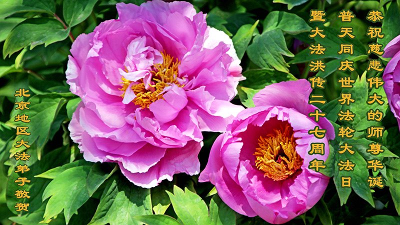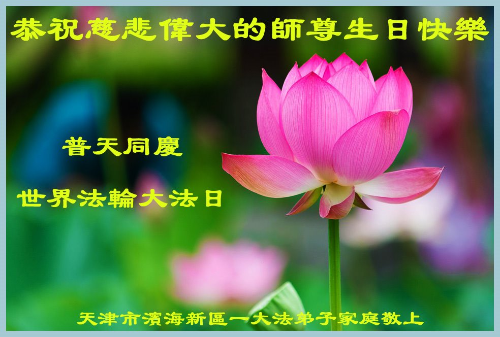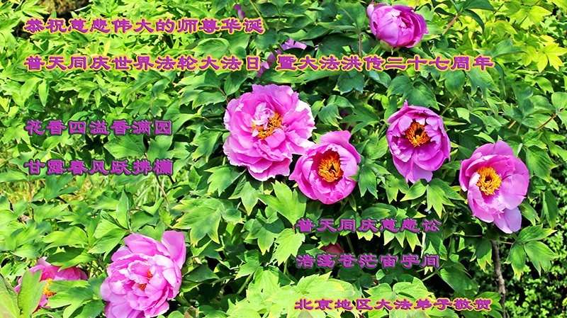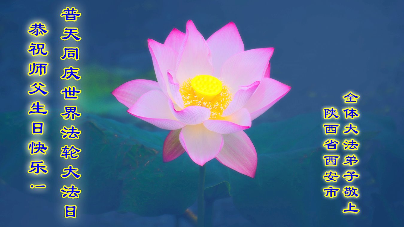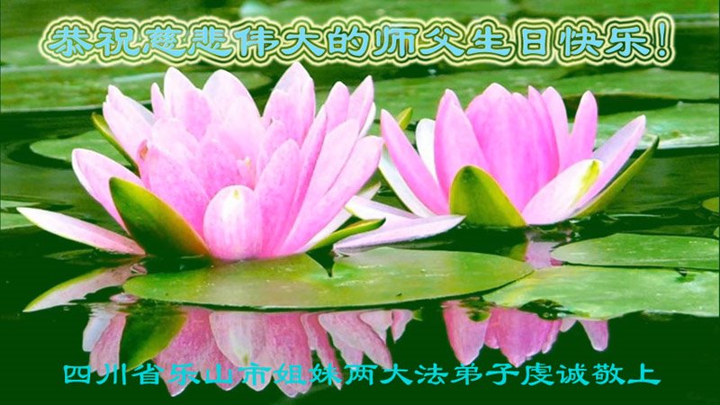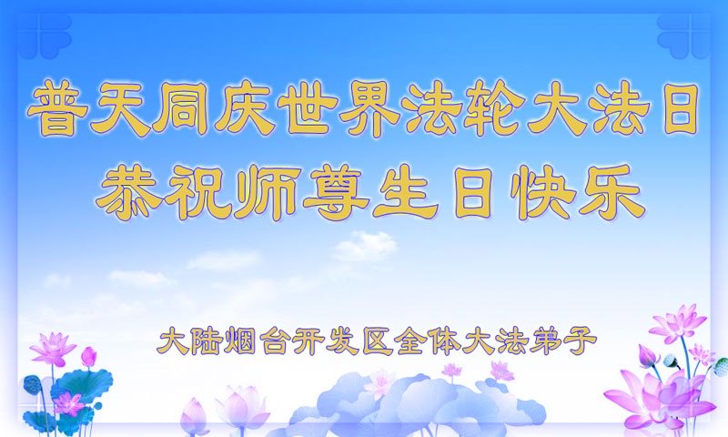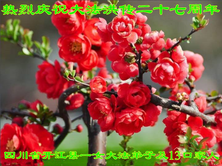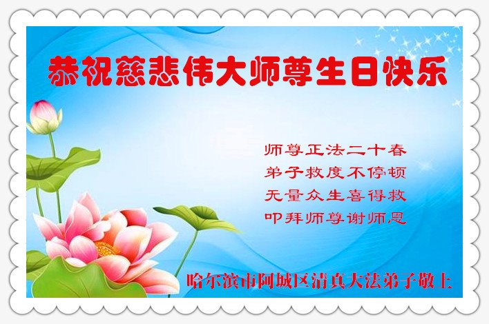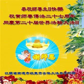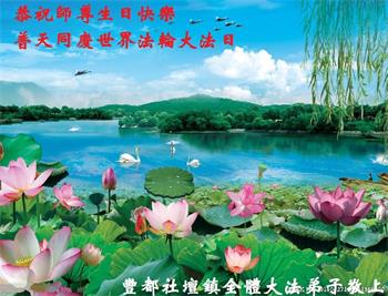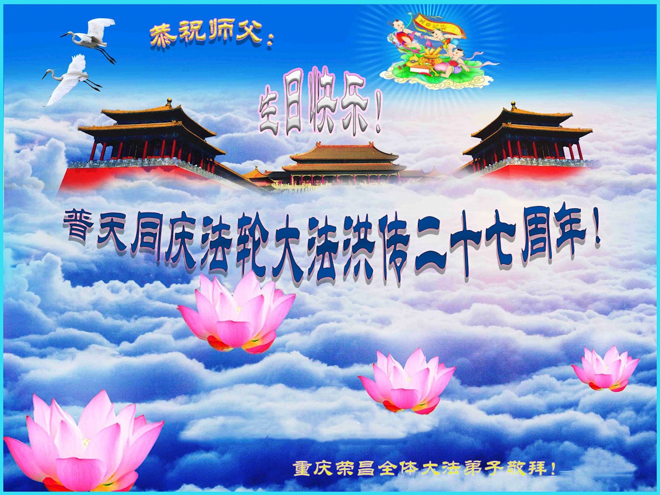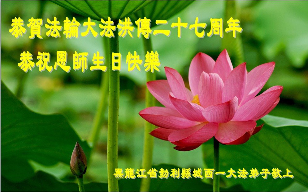 “五·一三”世界法轮大法日暨慈悲伟大师父的华诞到了!我们一家同修三人及我们现在的学法小组全体弟子在此衷心恭祝慈悲伟大的师父生日快乐!发自内心的感恩慈悲无量的伟大的师父!是您的慈悲救度,弟子们才有了今天。