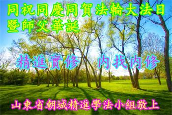 山东诸城市一学法小组大法弟子表示:每天一起学法交流,讲真相救度众生,修好自己去掉私心,同化大法。同修们比学比修,精進不怠。