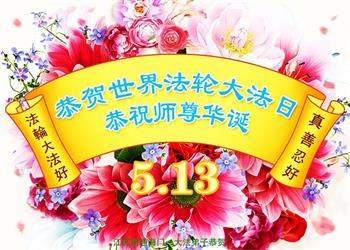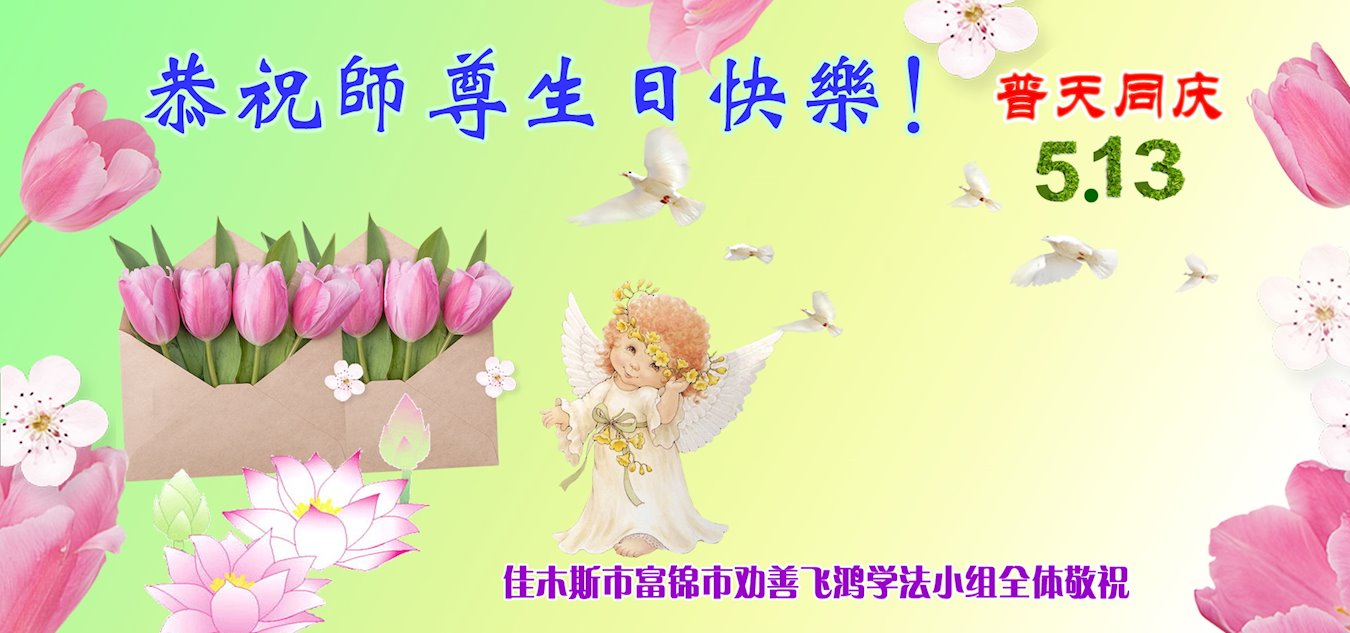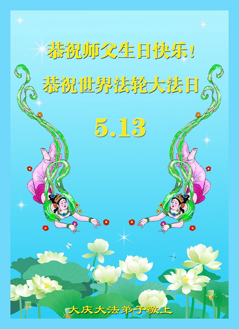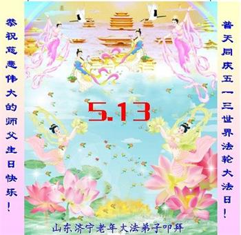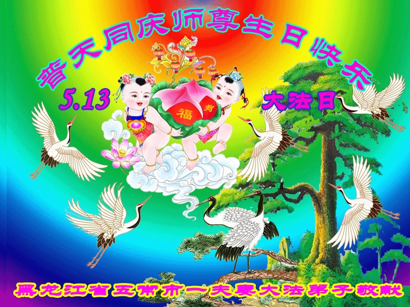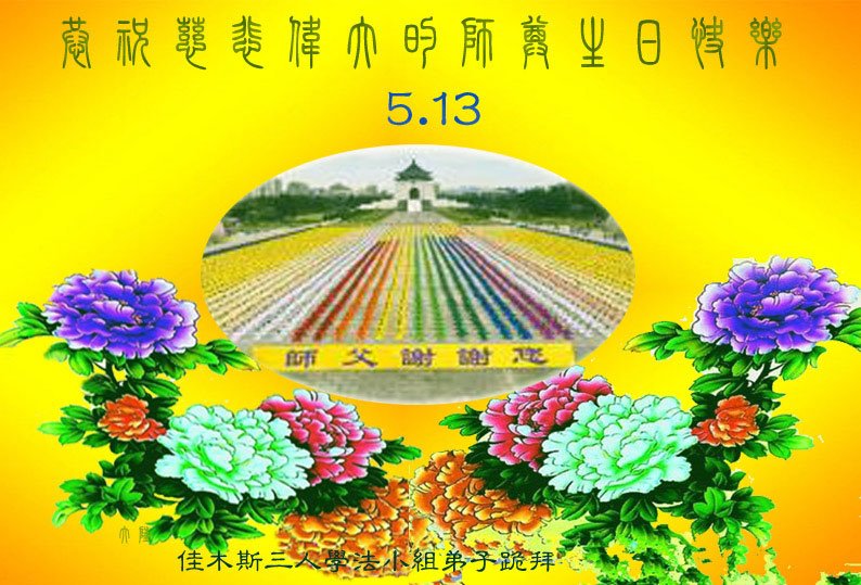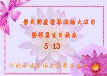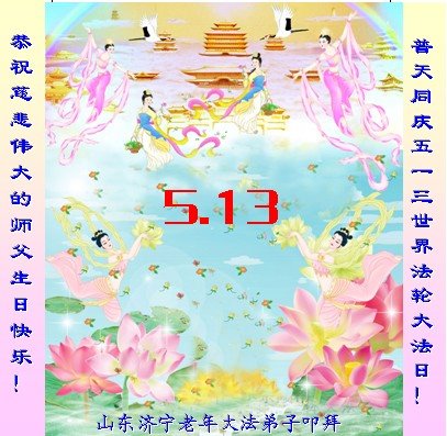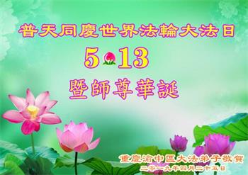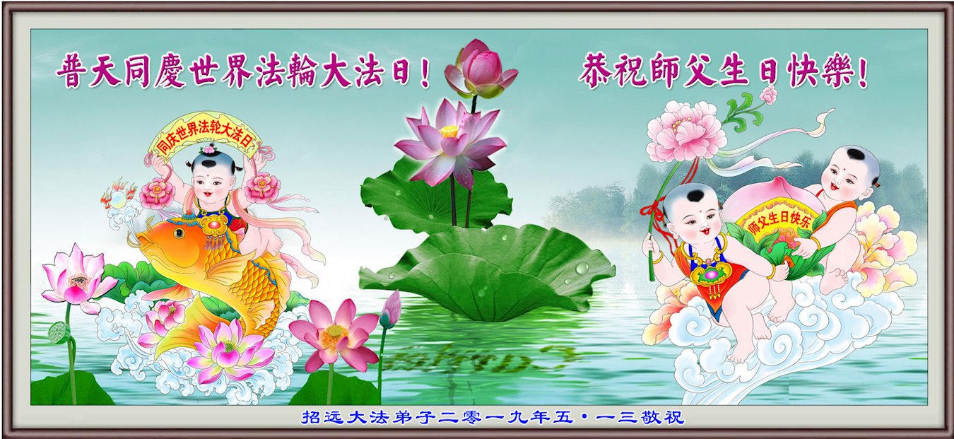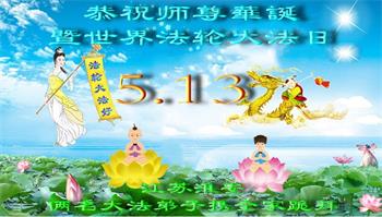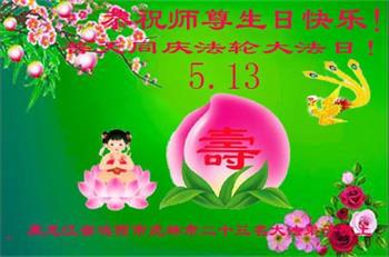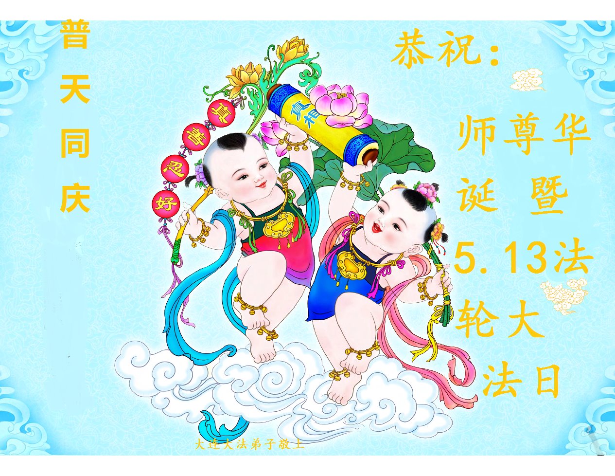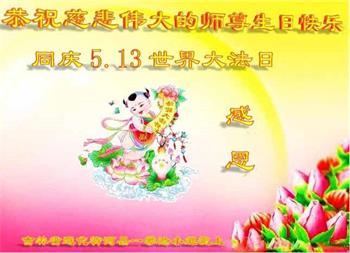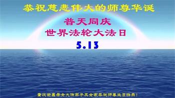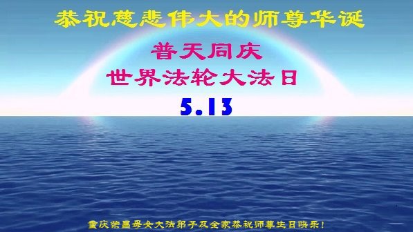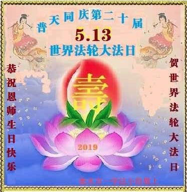 在5月13日世界法轮大法日、大法师父华诞到来之际,明真相得福报的民众恭祝李大师生日快乐!恭贺世界法轮大法日!