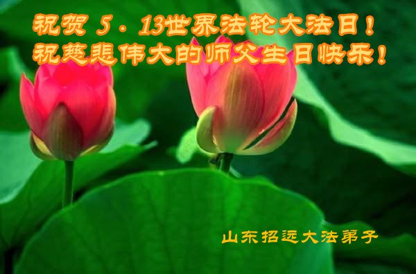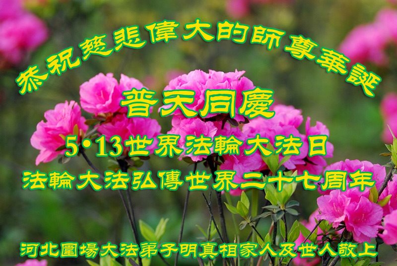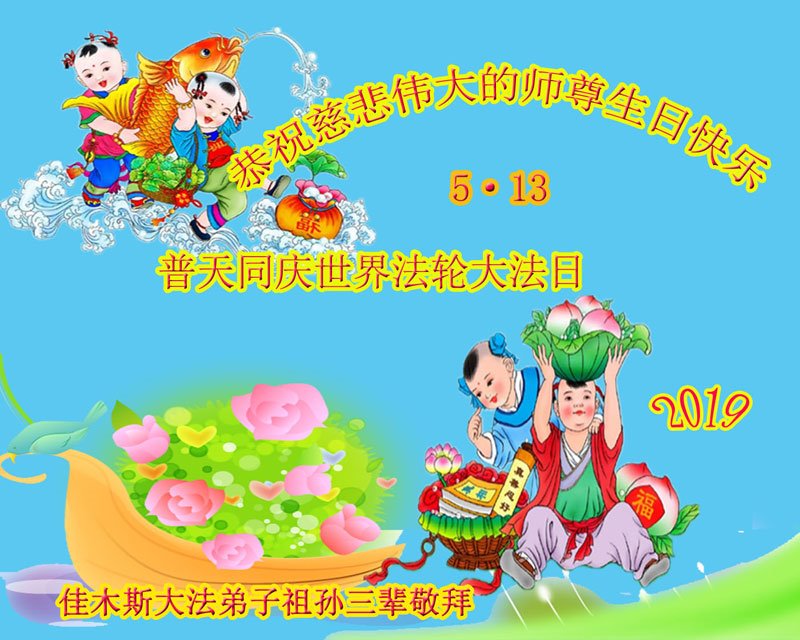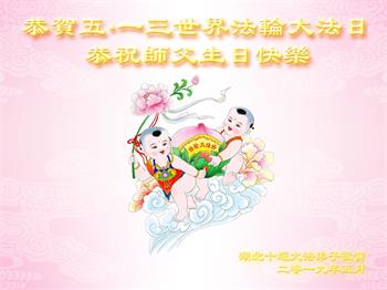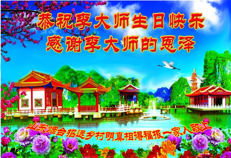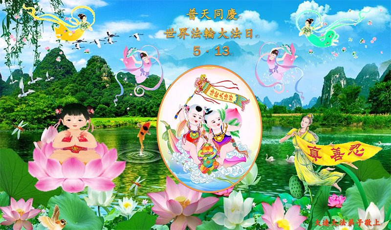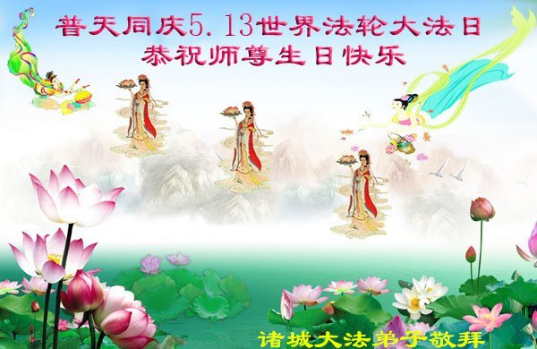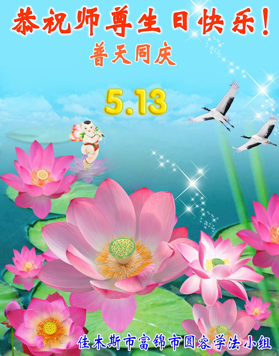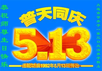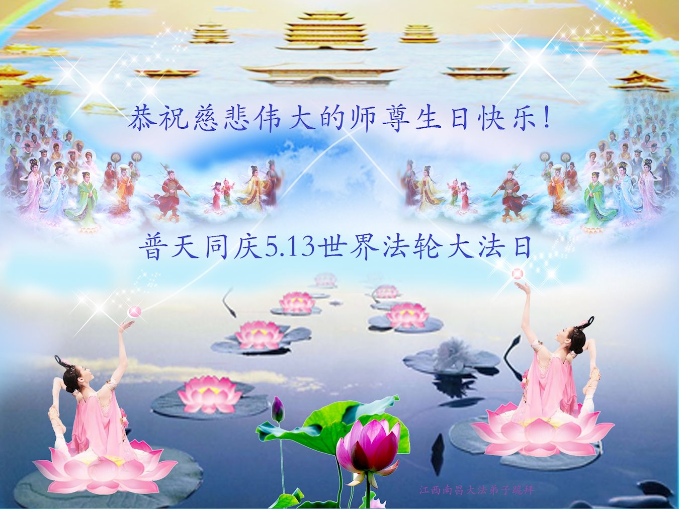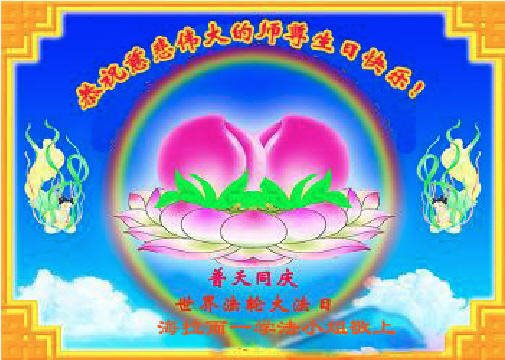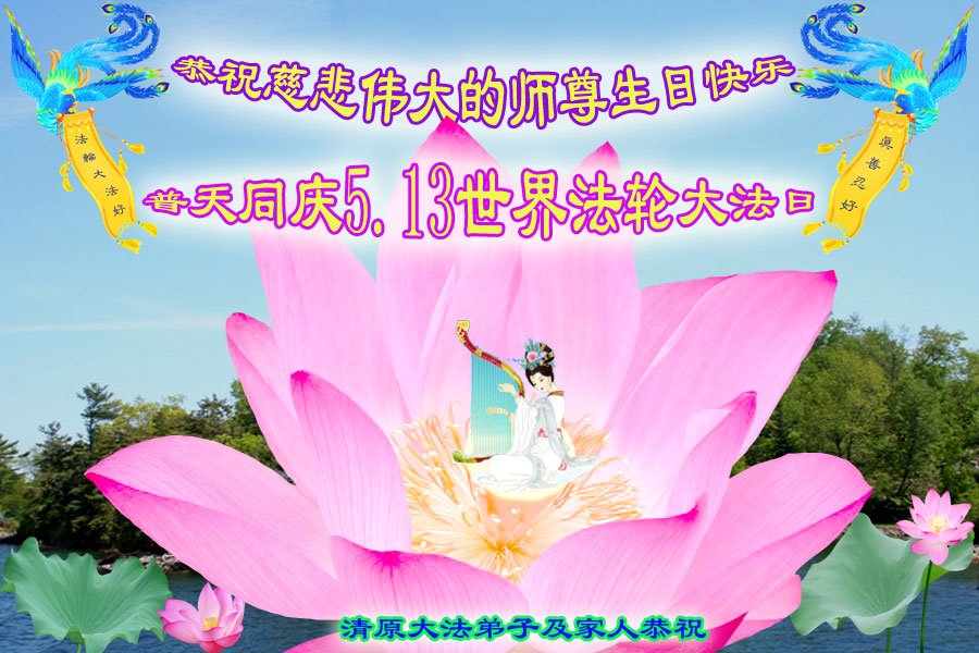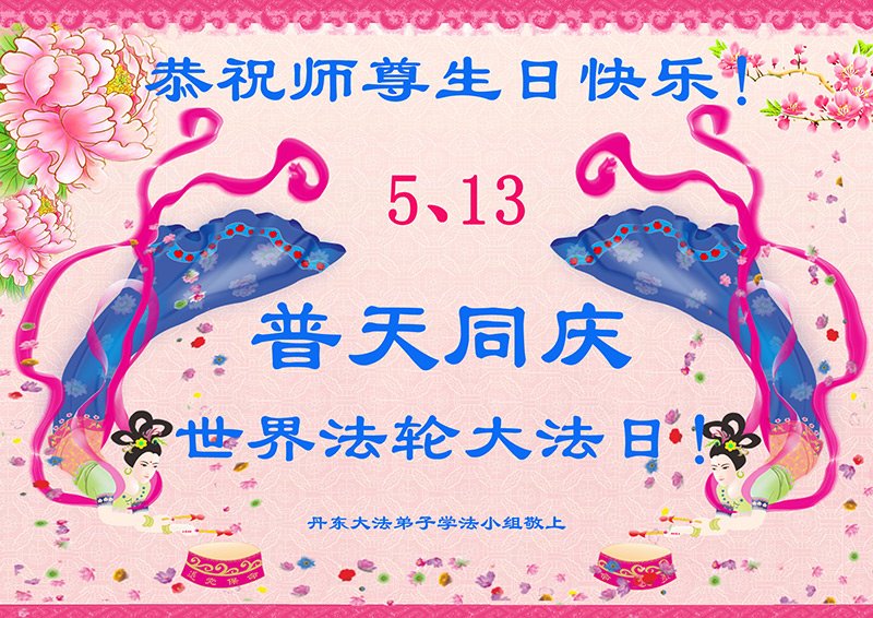 在5月13日世界法轮大法日、大法师父华诞到来之际,明真相得福报的民众恭祝李大师生日快乐!恭贺世界法轮大法日!