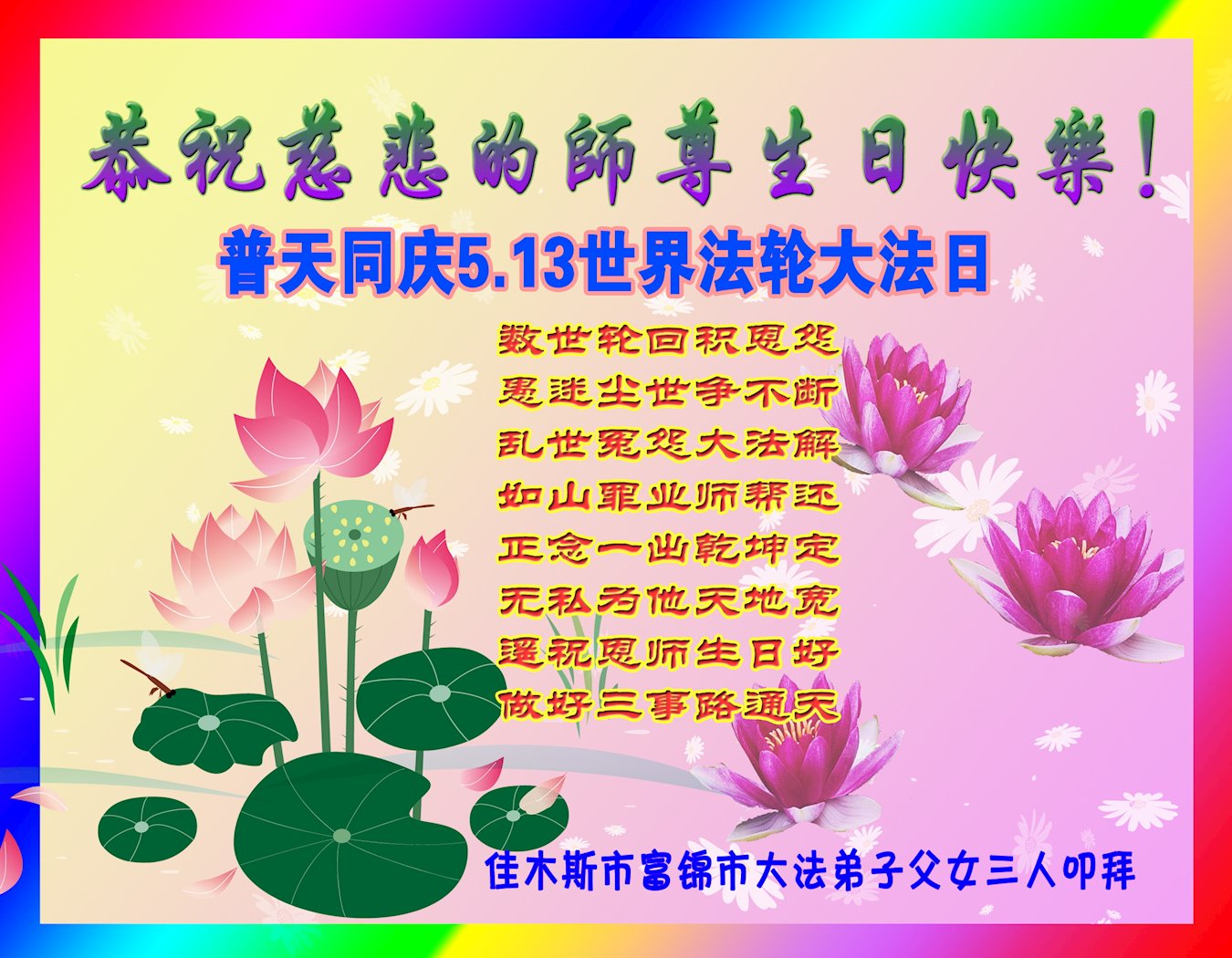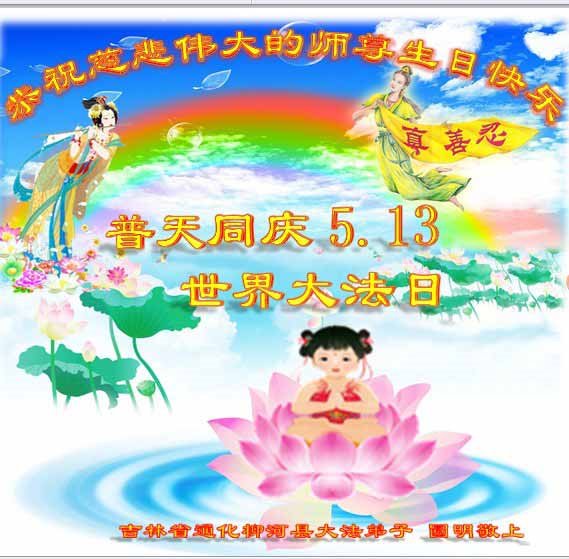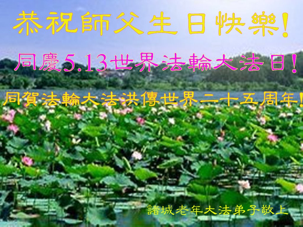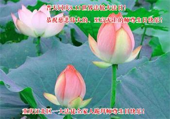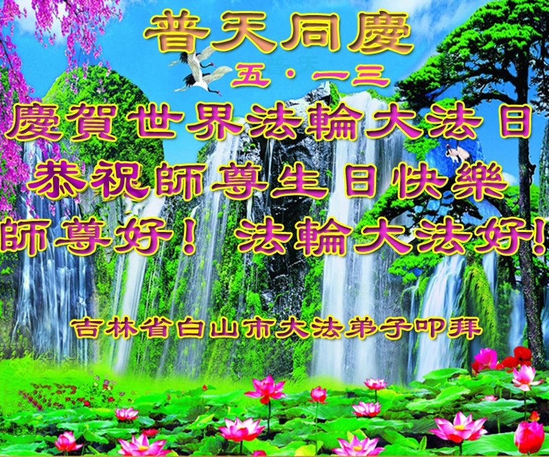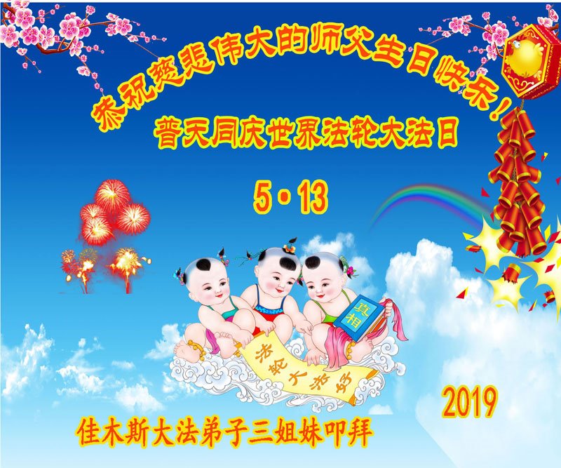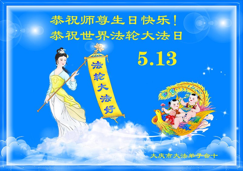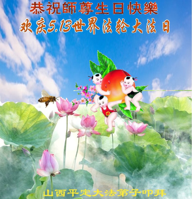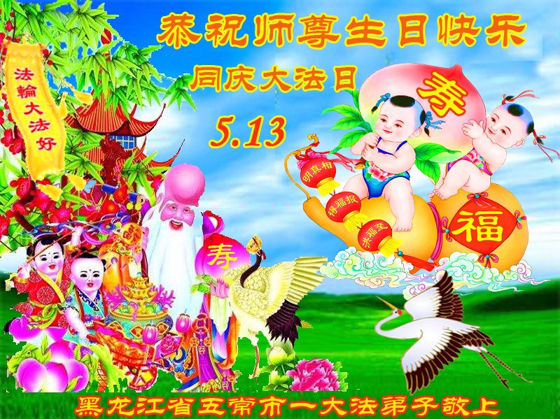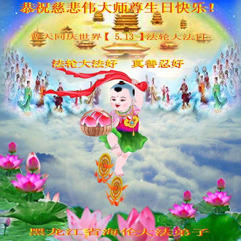 在5月13日世界法轮大法日、大法师父华诞到来之际,明真相得福报的民众恭祝李大师生日快乐!恭贺世界法轮大法日!