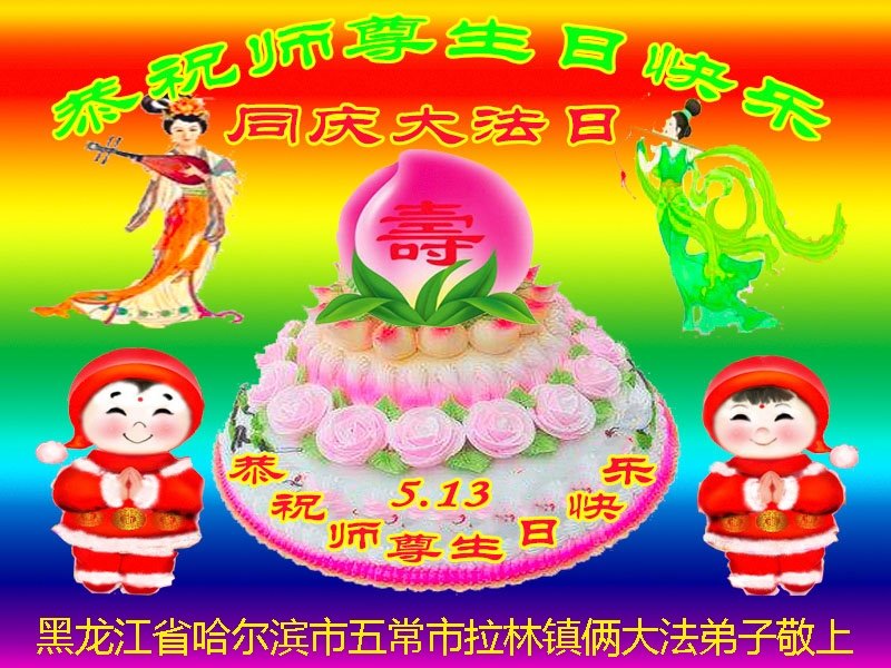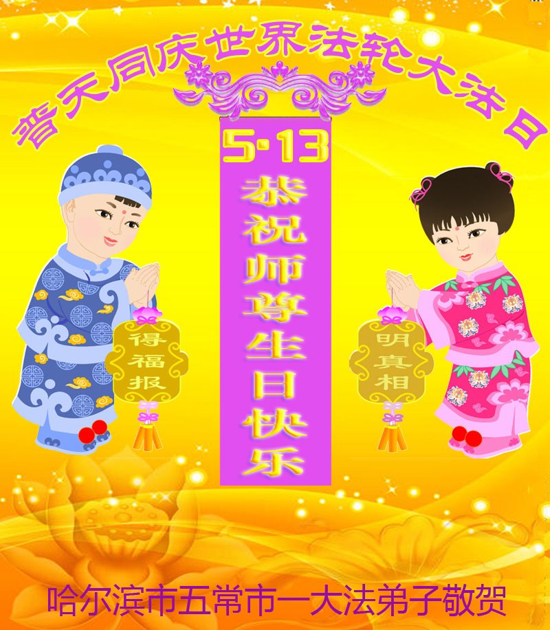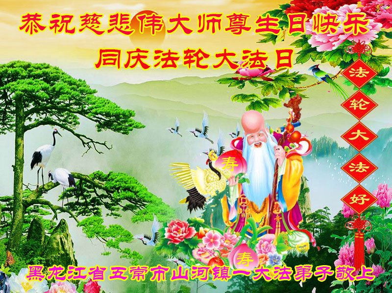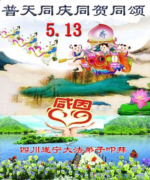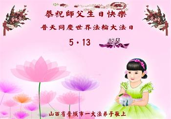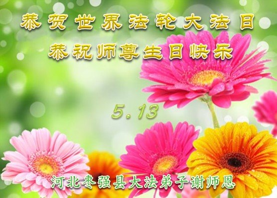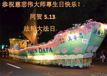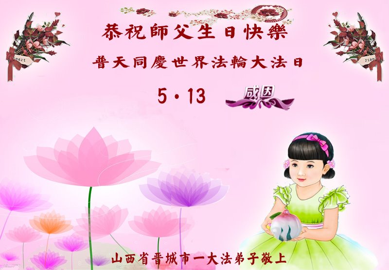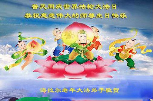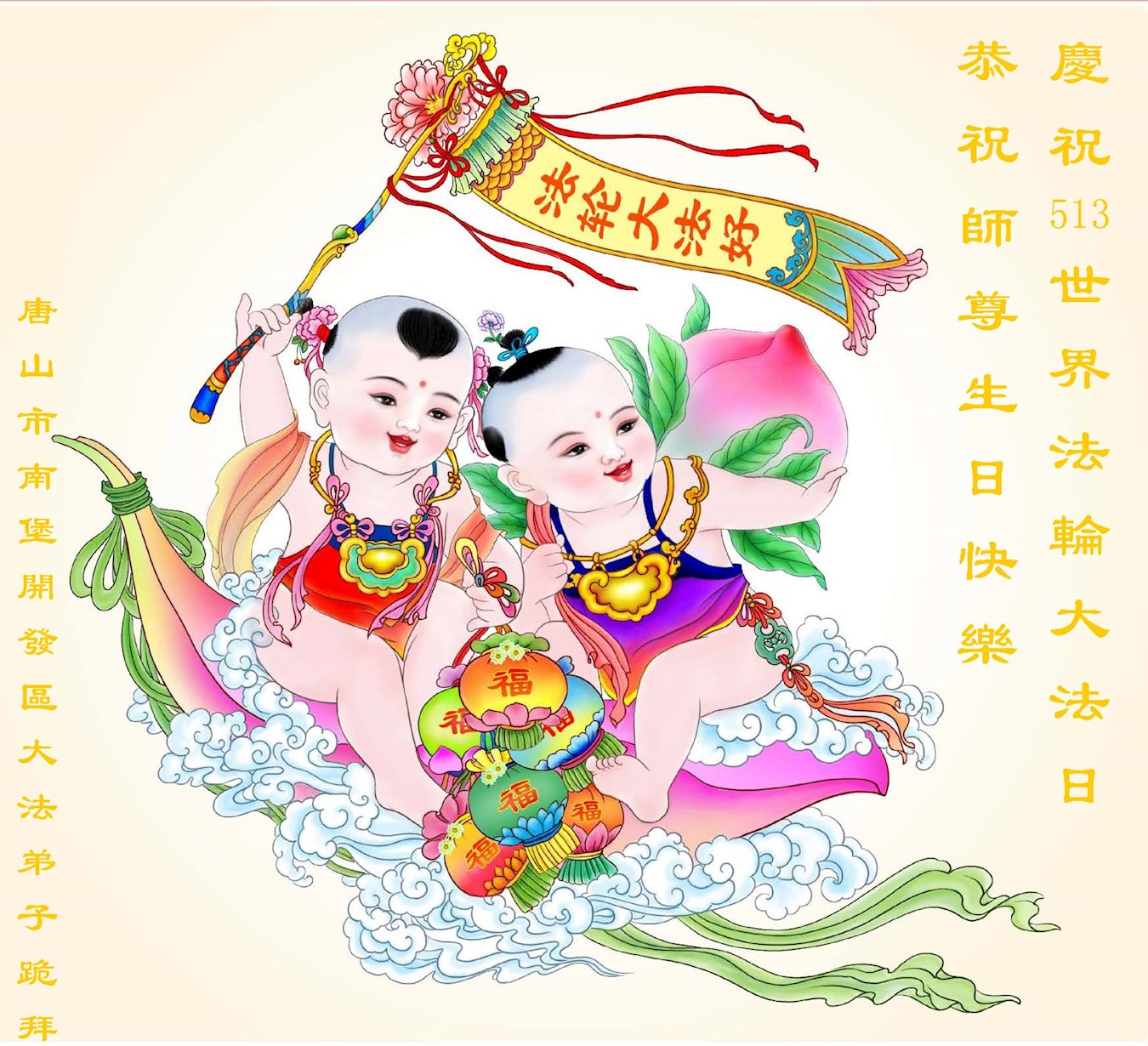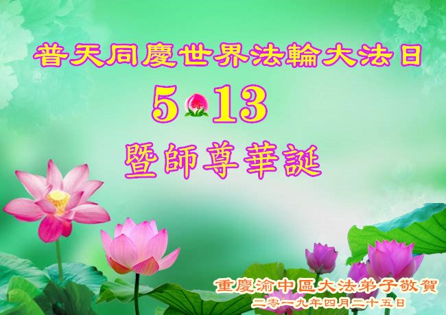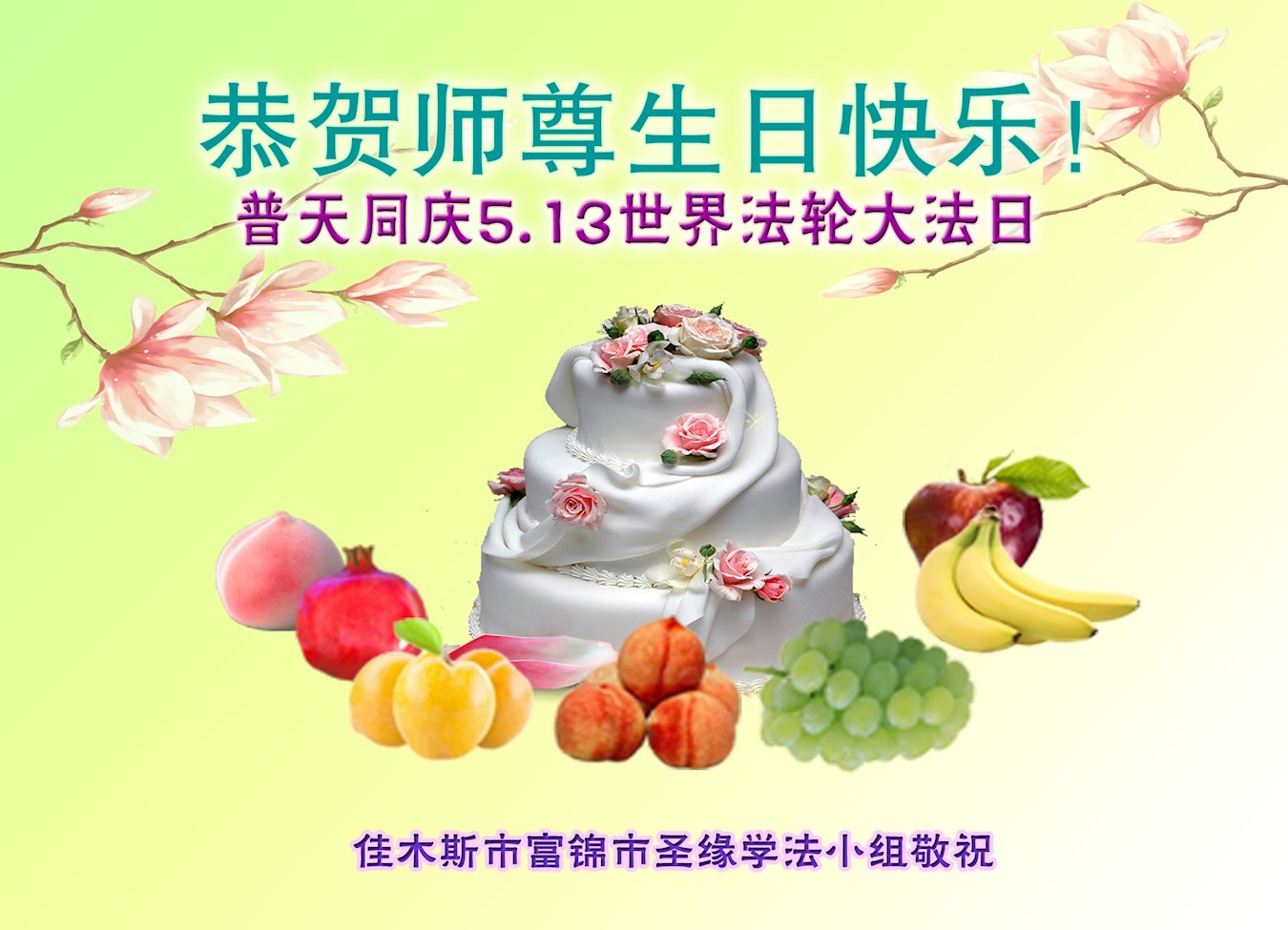 在5月13日世界法轮大法日、大法师父华诞到来之际,明真相得福报的民众恭祝李大师生日快乐!恭贺世界法轮大法日!