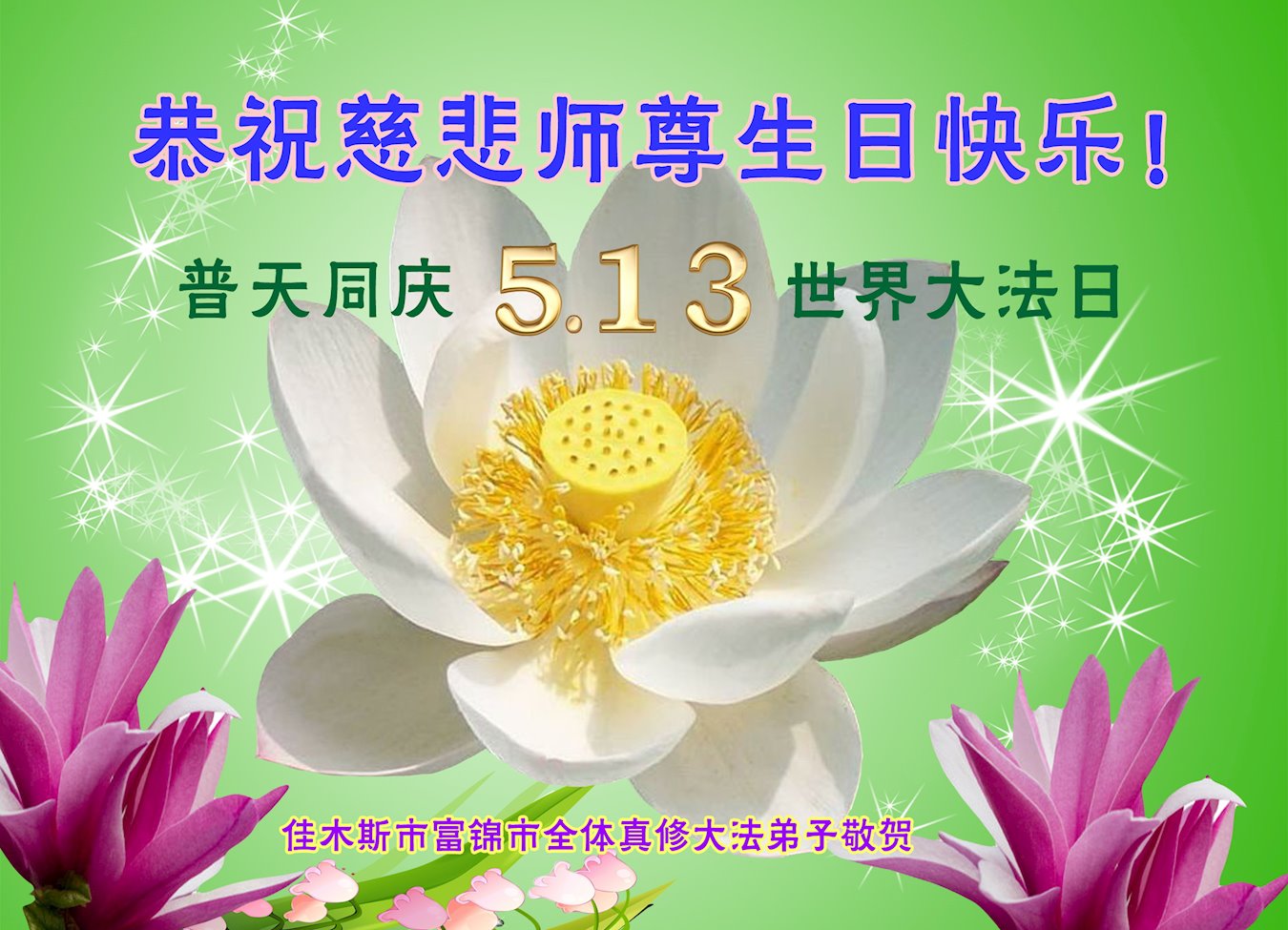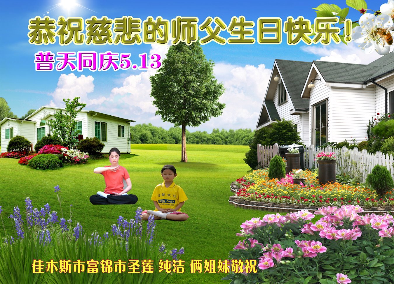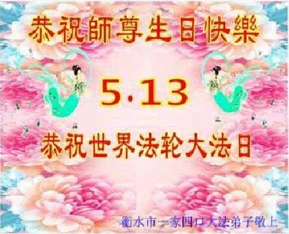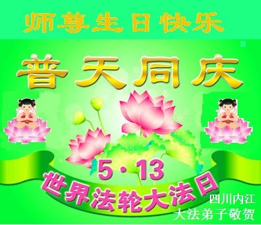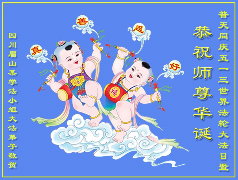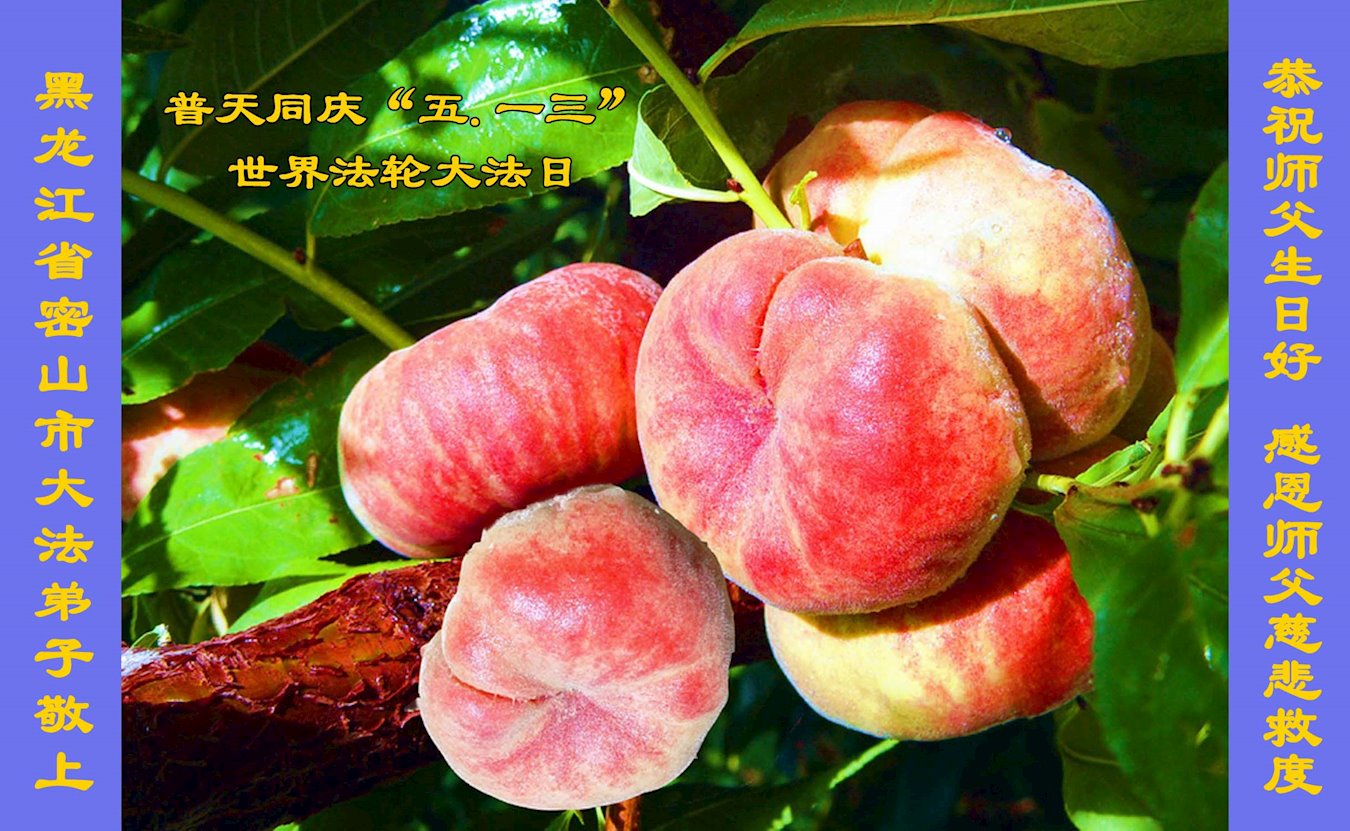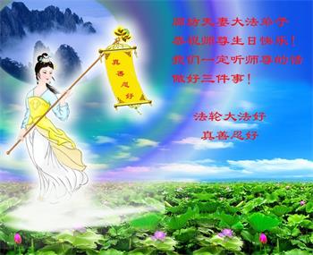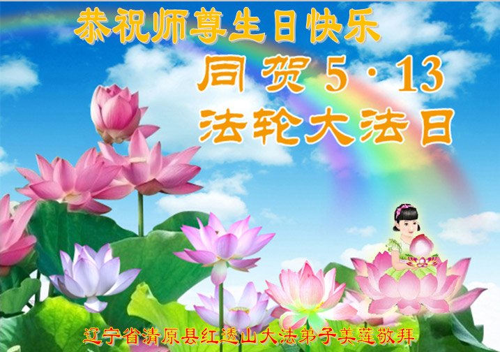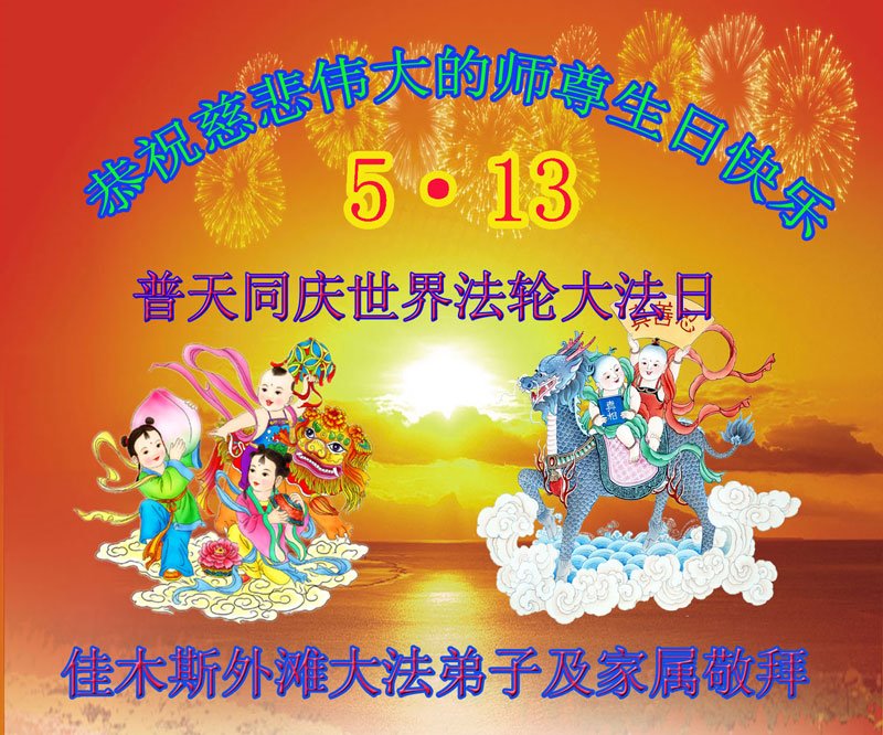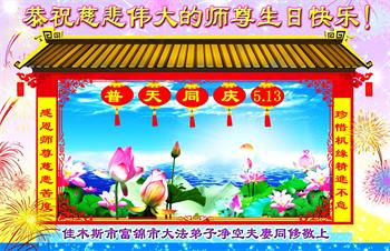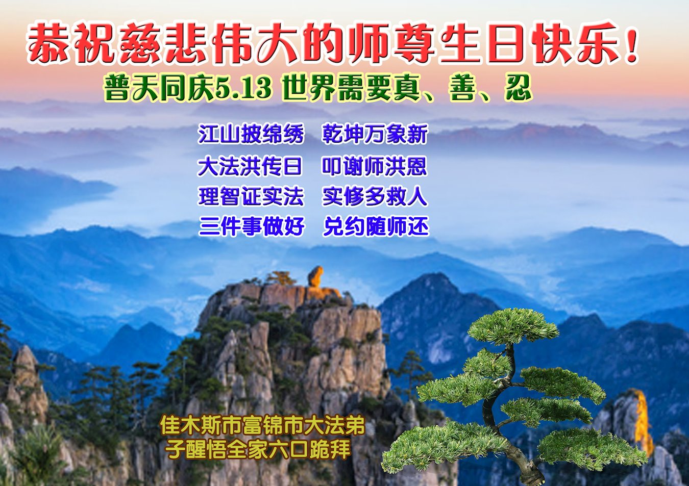 在5月13日世界法轮大法日、大法师父华诞到来之际,明真相得福报的民众恭祝李大师生日快乐!恭贺世界法轮大法日!