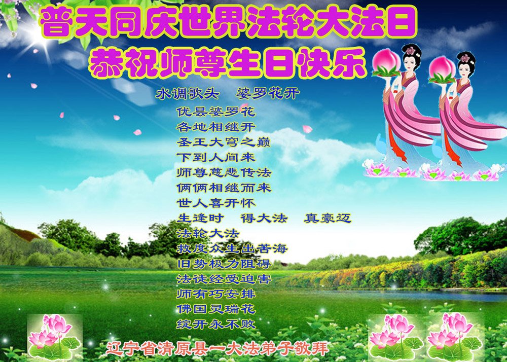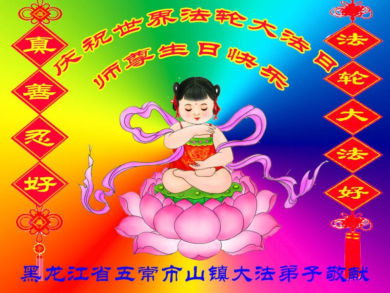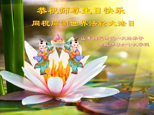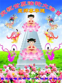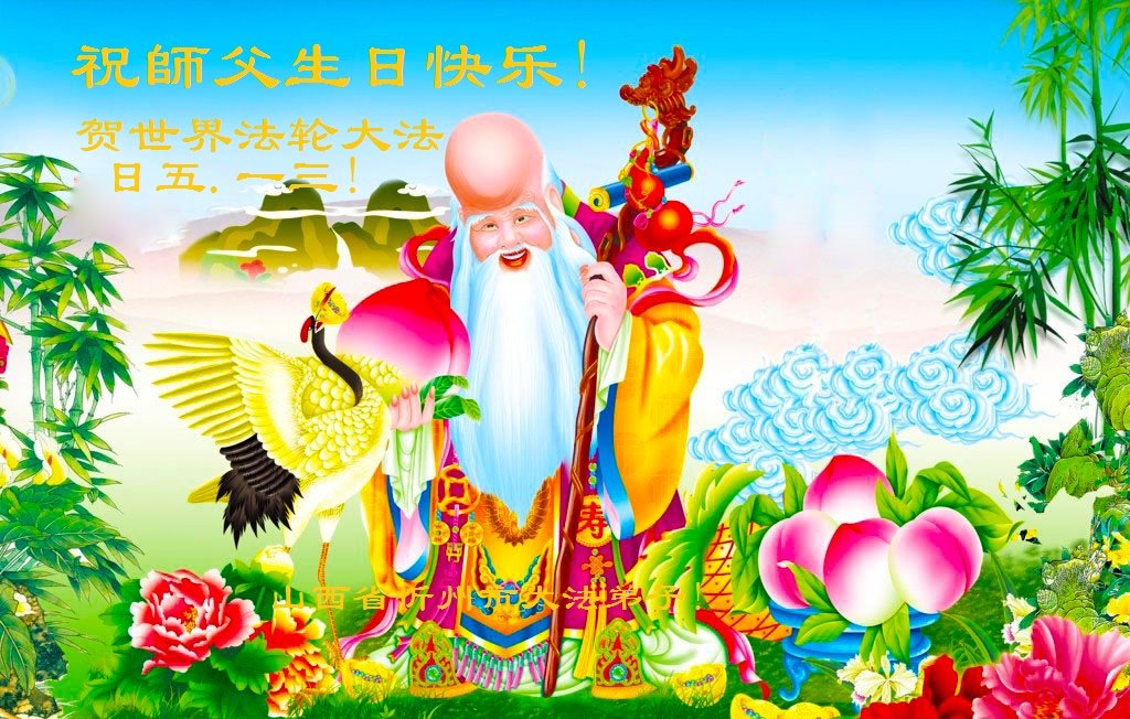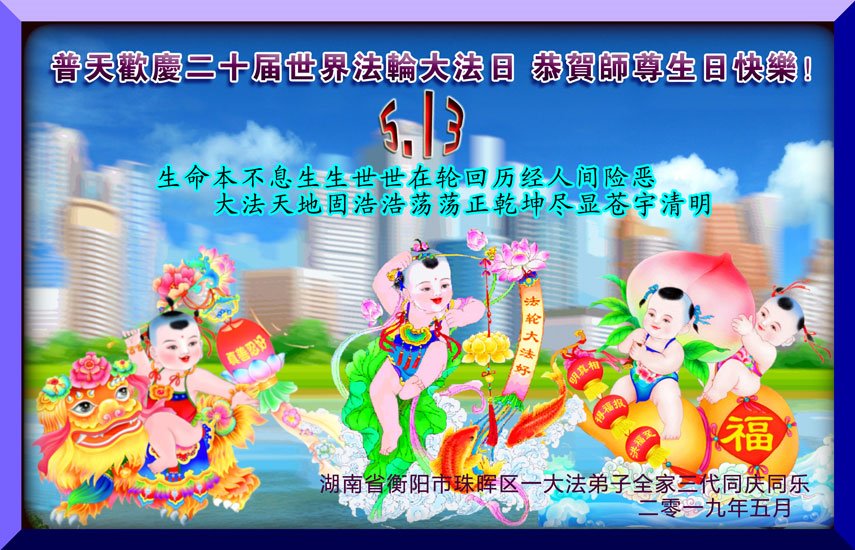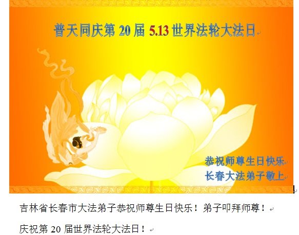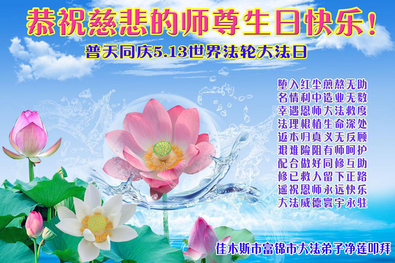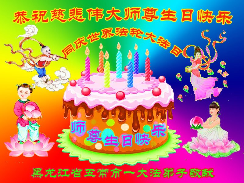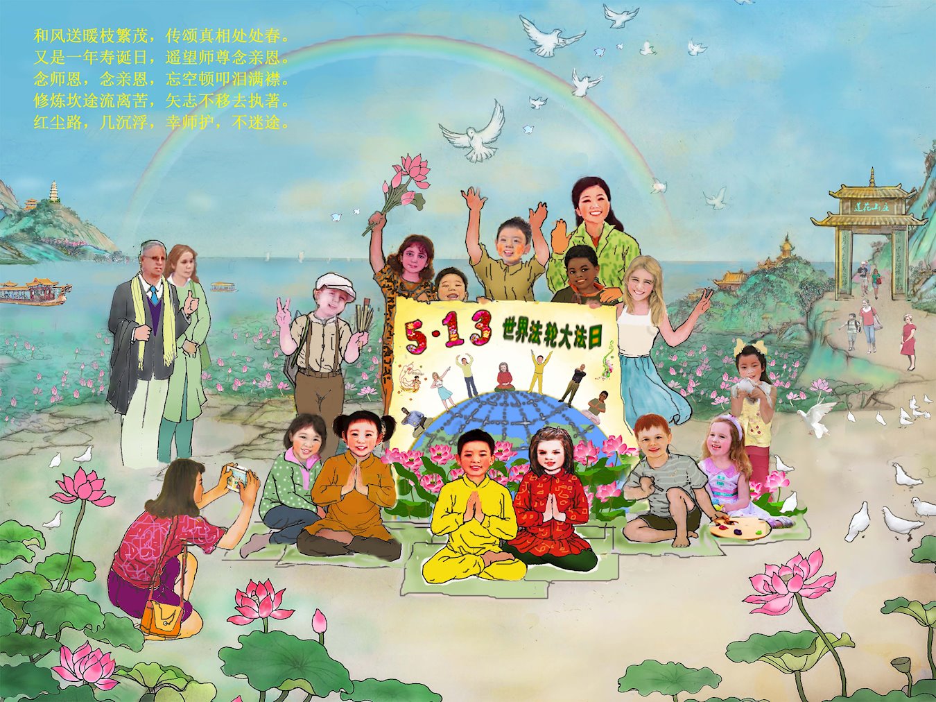 在5月13日世界法轮大法日、大法师父华诞到来之际,明真相得福报的民众恭祝李大师生日快乐!恭贺世界法轮大法日!