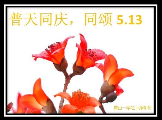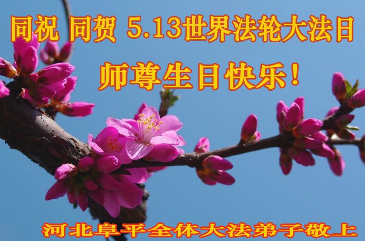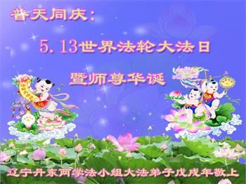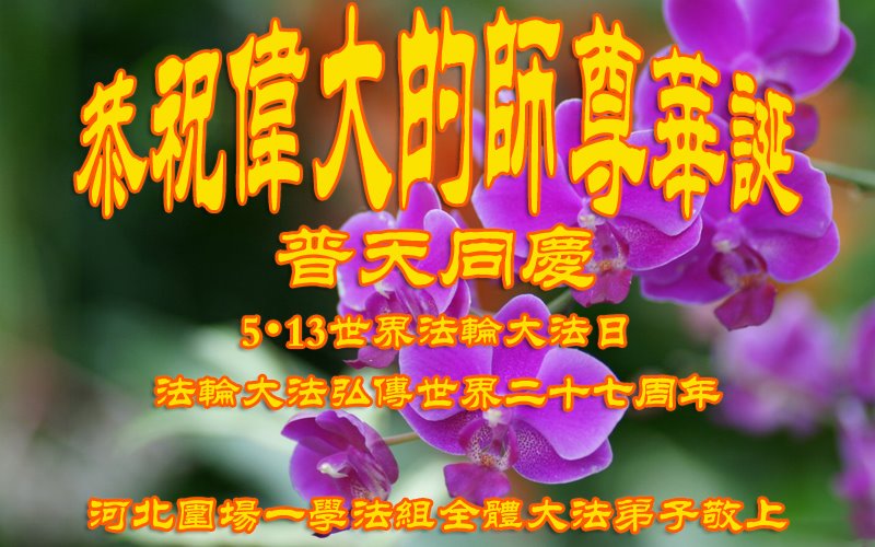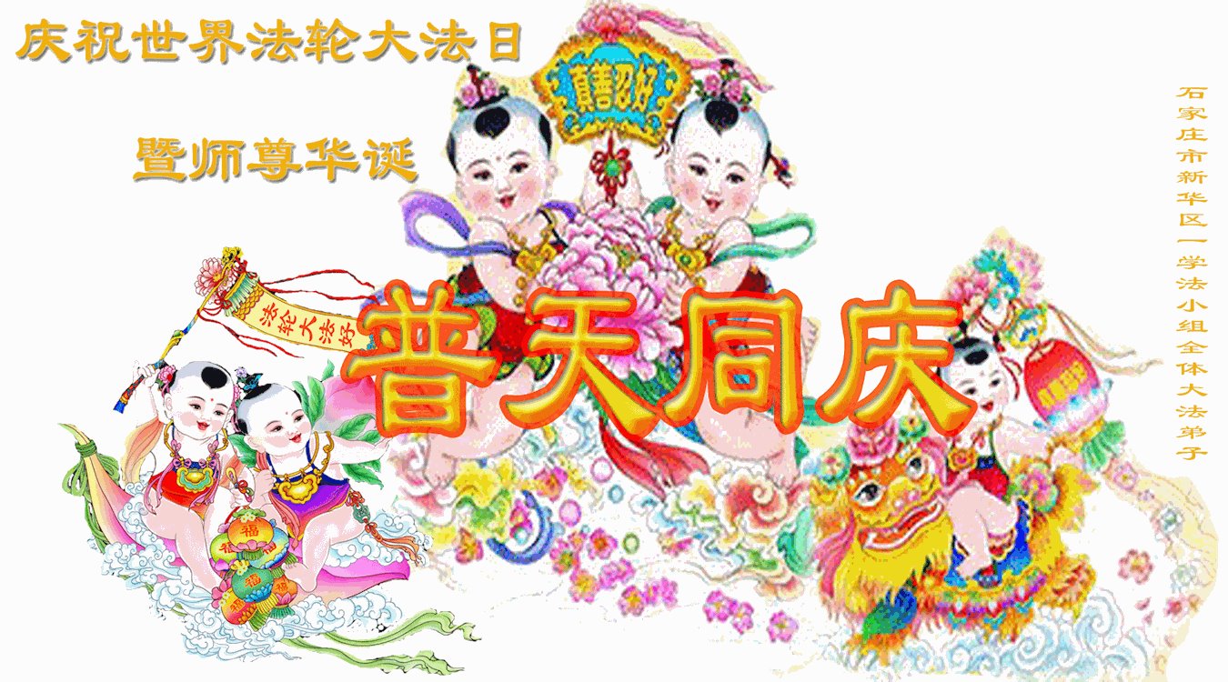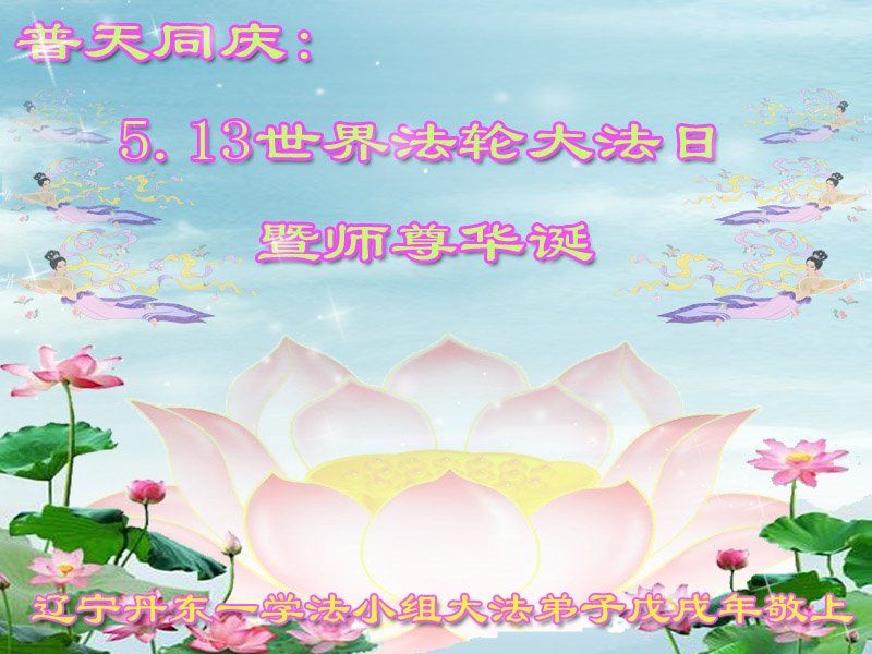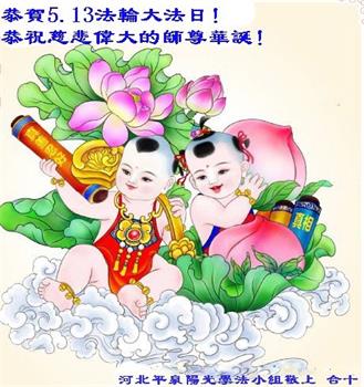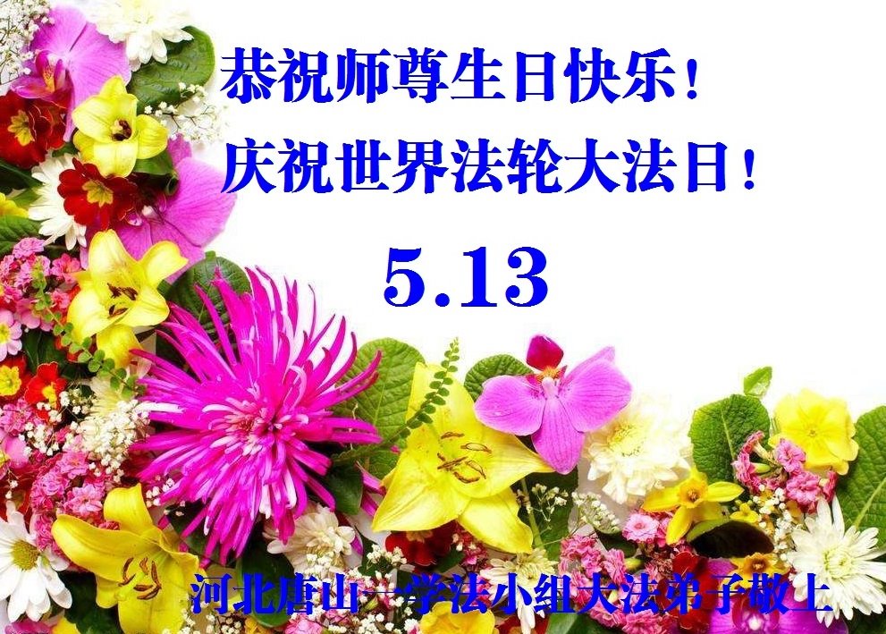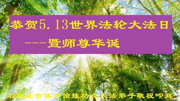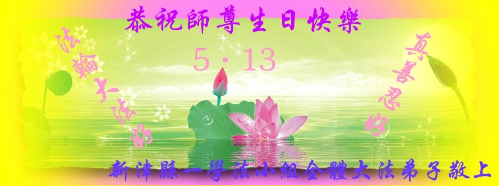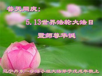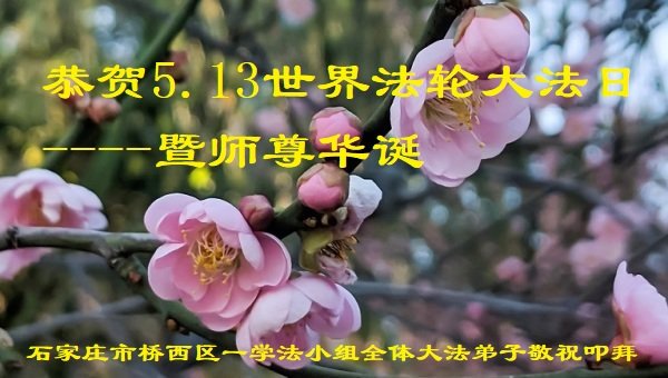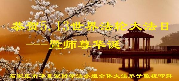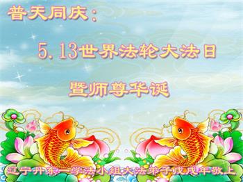 五月十三日是世界法轮大法日,也是师尊的华诞,在这普天同庆的日子里我们学法小组全体大法弟子怀着无比激动的心情恭祝师尊生日快乐!法轮大法好!真善忍好!