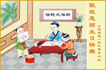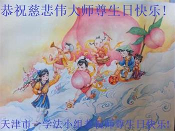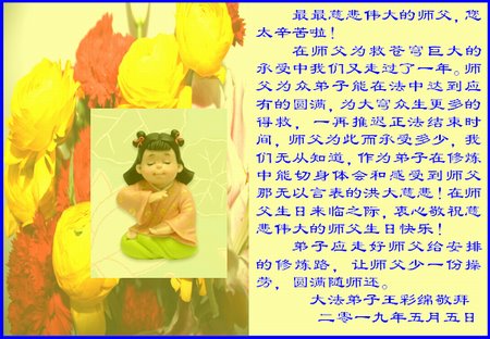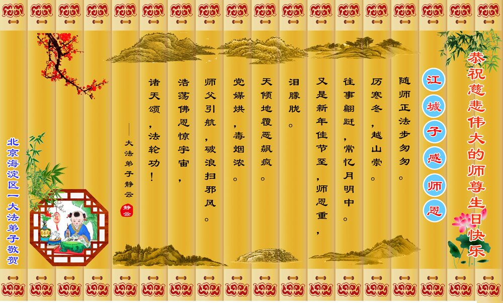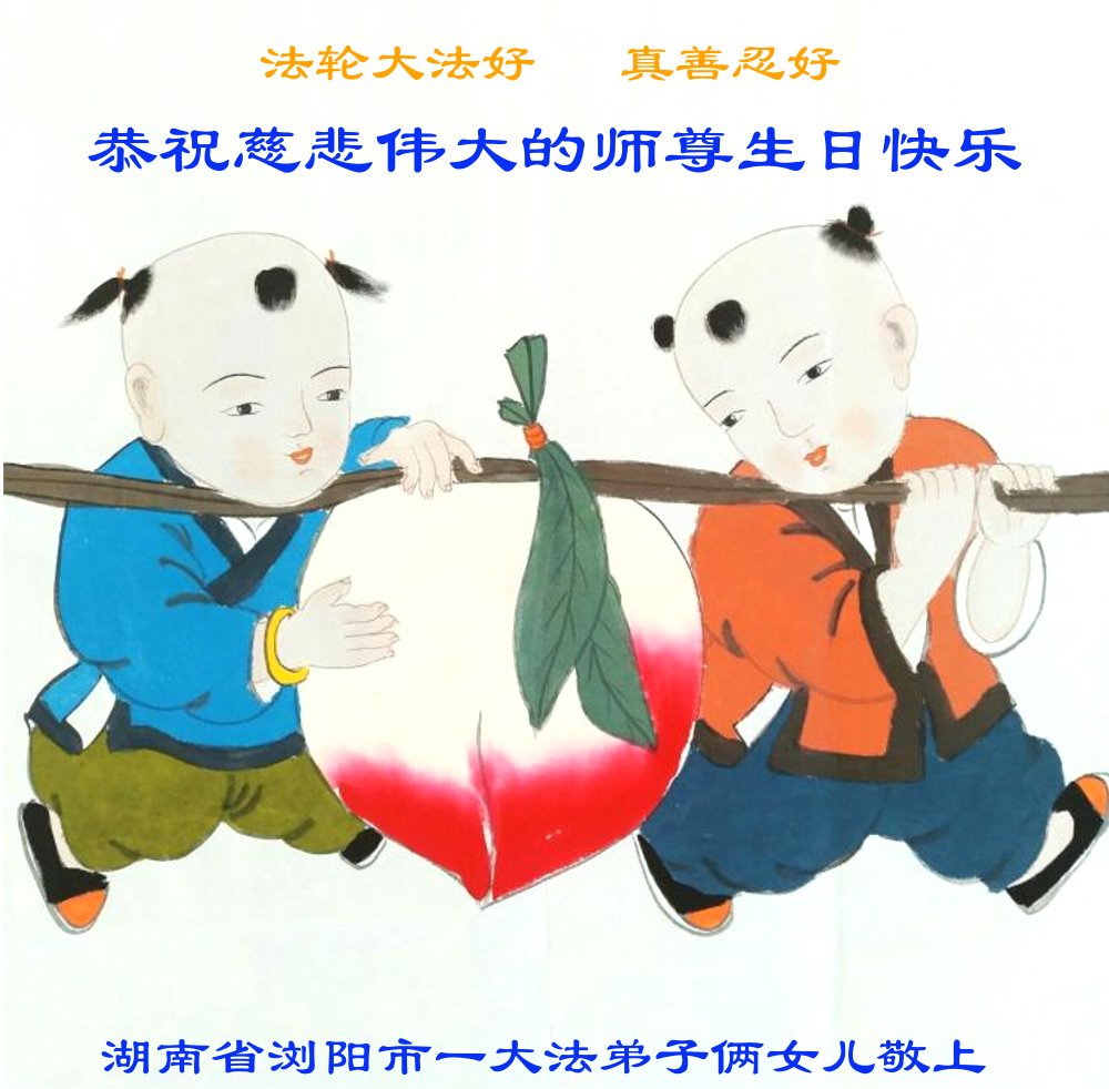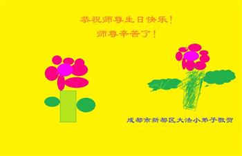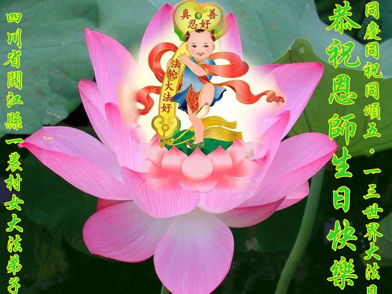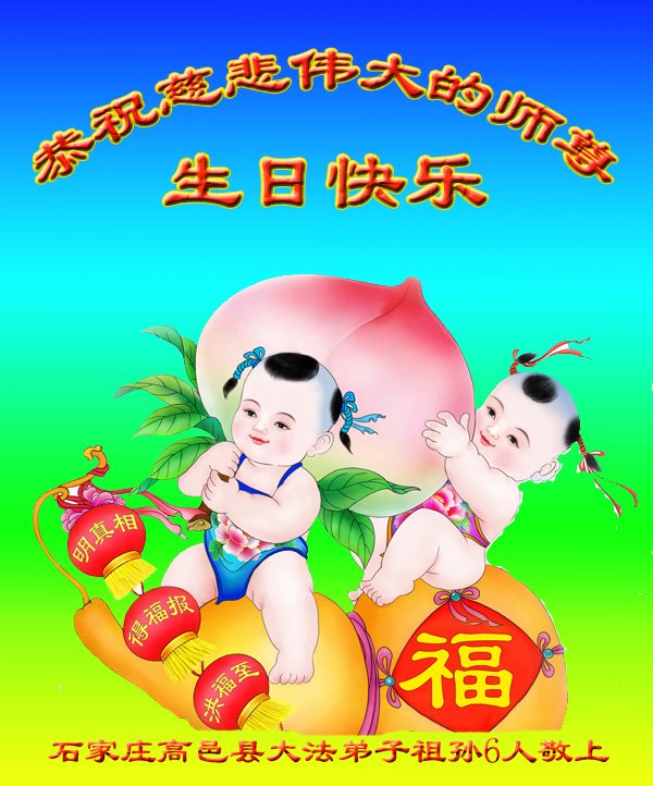 我四岁的小妹也祝师父生日快乐!她也经常念“法轮大法好!真、善、忍好!”也给师父磕头还能背几首《洪吟》,她身体健康。