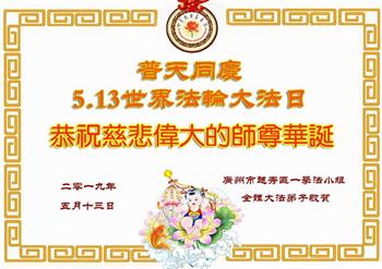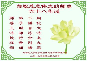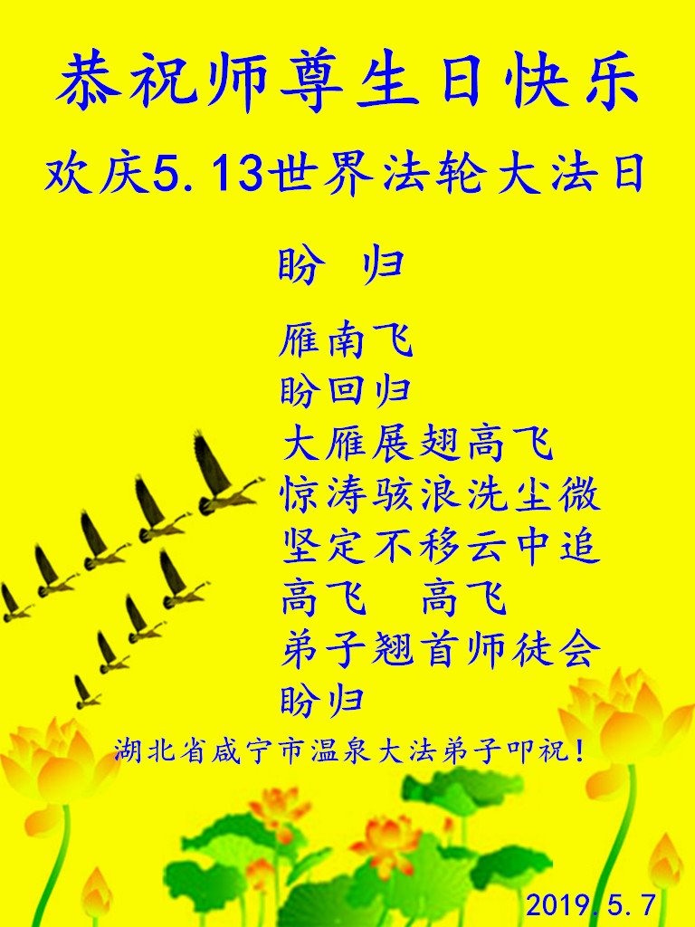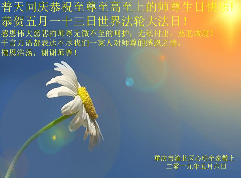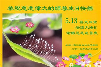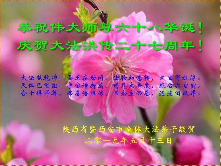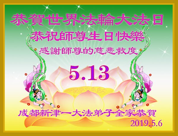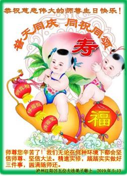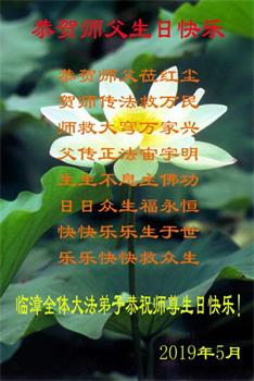 <英文版: http://en.minghui.org/html/articles/2019/5/11/177061.html>中国各地学法组大法弟子恭贺师尊华诞