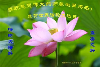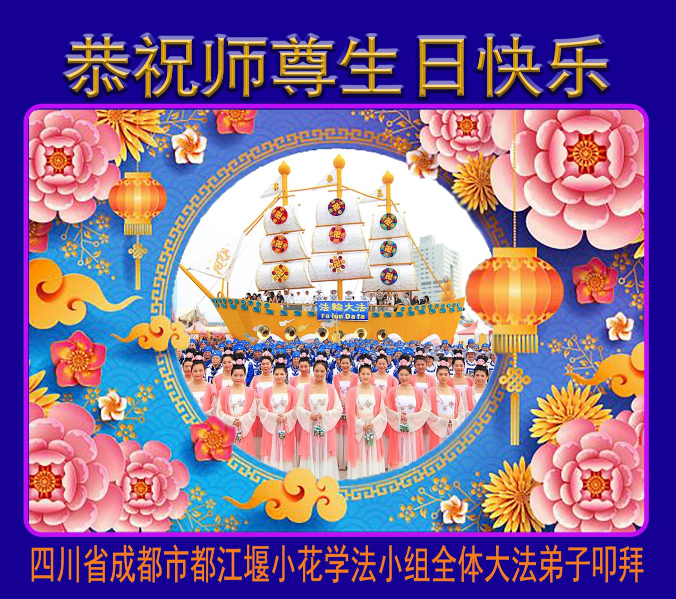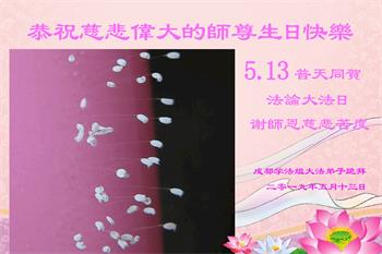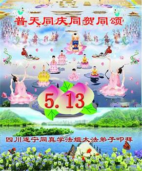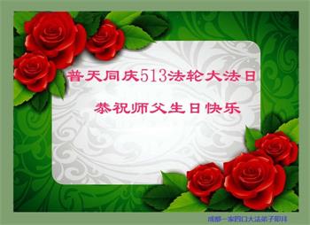 时光飞逝如梭穿,正法進程又一年。沐浴着“真、善、忍”的法光,流光溢彩的五月又迎来了普天同庆、同颂、神圣的感恩的日子――慈悲伟大的师父华诞之日及“五·一三”世界法轮大法日。值此,我们成都市一中学教师学法小组大法弟子将千言万语化作一句话:师父,请接受我们发自心灵深处的无限感恩与叩拜!师父,弟子想念您!祝您生日快乐!