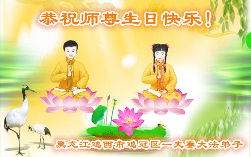 我实实在在体会到相信大法好能得福报!谢谢李大师的恩赐!我们夫妻俩恭祝李大师生日快乐!