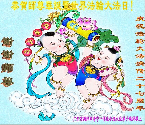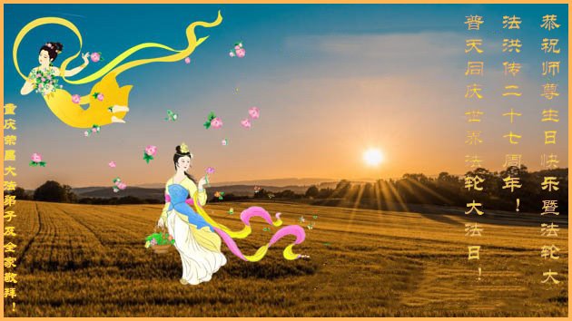 在普天同庆世界法轮大法日暨师尊传法二十七周年纪念日之际,我们学法小组全体大法弟子恭祝慈悲伟大的师尊生日快乐!谢谢师父的苦度,在正法的最后的时刻,牢记师父的教诲,多学法、向内找,做好三件事,多救人,完成使命,一定跟师父回家。
