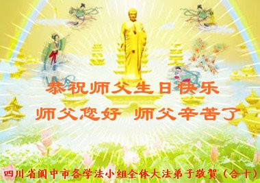 师父:您好!我们是四川南充大法弟子,我们五人学法小组的全体大法弟子无限感恩师尊对弟子的慈悲救度与保护!我们全体弟子表示:在这争分夺秒救人的今天,唯有精進再精進,做好师父安排的三件事,助师正法,圆满随师还。
