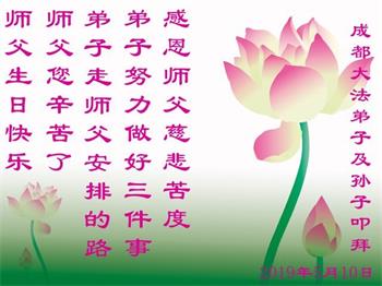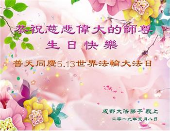• 成都大法弟子恭贺世界法轮大法日暨师尊华诞(21条)