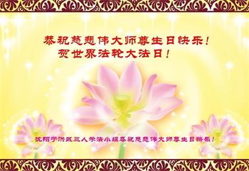 • 沈阳大法弟子恭贺世界法轮大法日暨师尊华诞(26条)