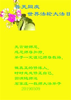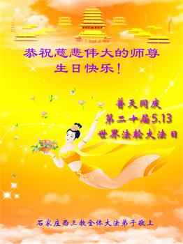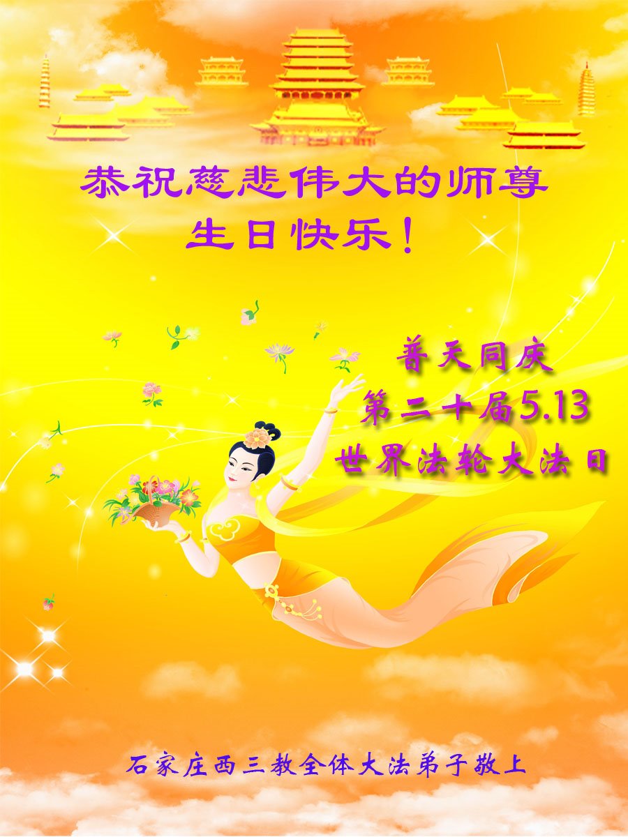 • 石家庄大法弟子恭贺世界法轮大法日暨师尊华诞(24条)