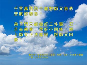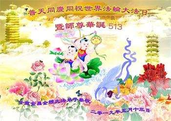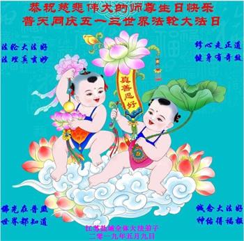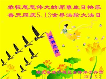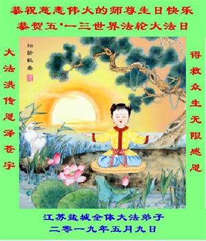 • 江苏大法弟子恭贺世界法轮大法日暨师尊华诞(19条)