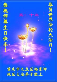 • 重庆大法弟子恭贺世界法轮大法日暨师尊华诞(20条)