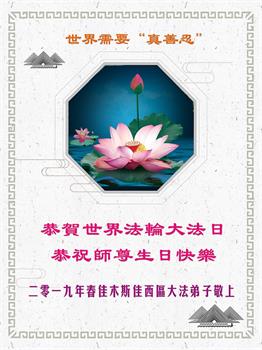 • 德州市大法弟子恭贺世界法轮大法日暨师尊华诞(28条)