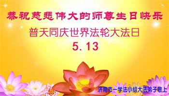 • 济南大法弟子恭贺世界法轮大法日暨师尊华诞(20条)