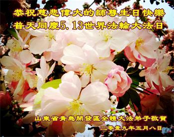 • 青岛大法弟子恭贺世界法轮大法日暨师尊华诞(19条)
