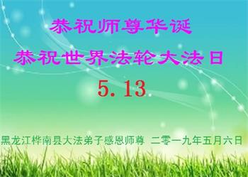 • 黑龙江大法弟子恭贺世界法轮大法日暨师尊华诞(22条)