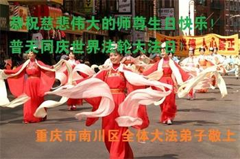 • 重庆大法弟子恭贺世界法轮大法日暨师尊华诞(28条)