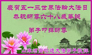 • 山东大法弟子恭贺世界法轮大法日暨师尊华诞(25条)