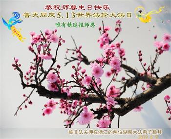 台湾电话组一大法弟子恭贺法轮大法日!台湾营救受迫害法轮功学员协会恭贺李大师生日快乐!香港大法弟子恭祝慈悲伟大的师父生日快乐!