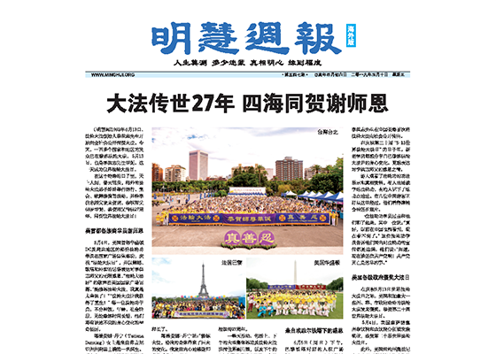 二十七年前的五月十三日,李洪志师父将法轮大法公开传世,“真、善、忍”的法理为全球五大洲不同族裔的上亿修炼者带来新生。