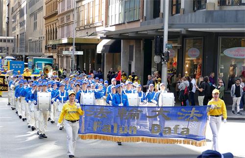 五月九日,法轮功学员在悉尼市中心海关大楼门前广场集体炼功后,由天国乐团领队向市中心主街方向游行,直至贝尔莫尔公园(Belmore Park)。悉尼众多学员怀着对师尊无限的感恩,向师尊遥祝生日快乐!