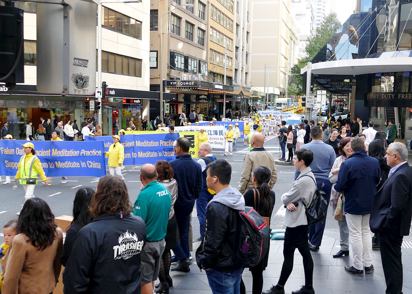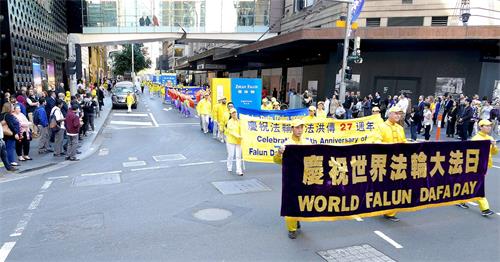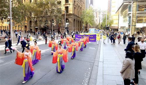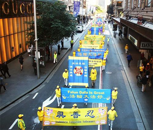 ![]() 图4~9:五月九日,法轮功学员在悉尼市中心主街上游行 |