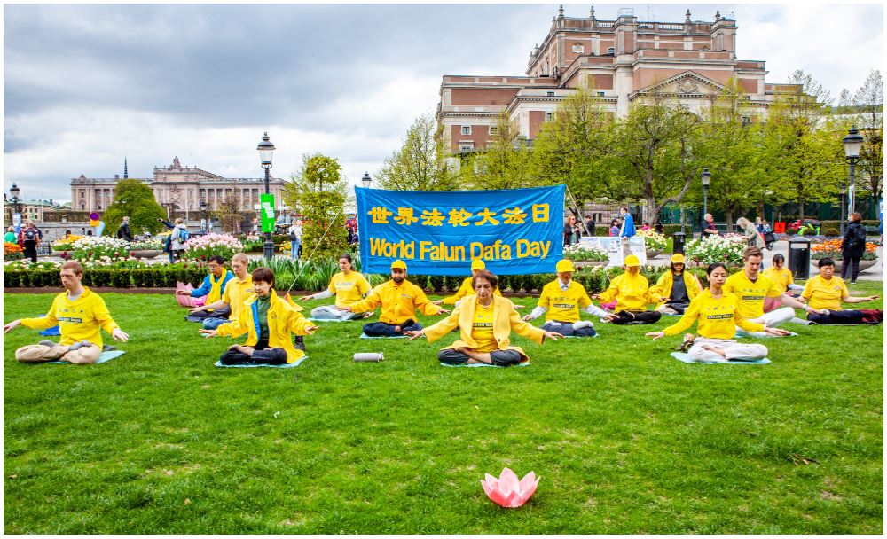 【明慧网二零一九年五月十二日】(明慧记者何平斯德哥尔摩报道)二零一九年五月十一日周六这天,瑞典法轮功学员聚集在首都斯德哥尔摩鲜花盛开的皇家花园,庆祝即将来临的“五一三 世界法轮大法日”、恭祝慈悲伟大的李洪志师尊生日快乐。学员们用集体炼功、讲真相、畅谈修炼体会等形式向世人展示法轮大法的美好,表达对师尊无尽的感恩。