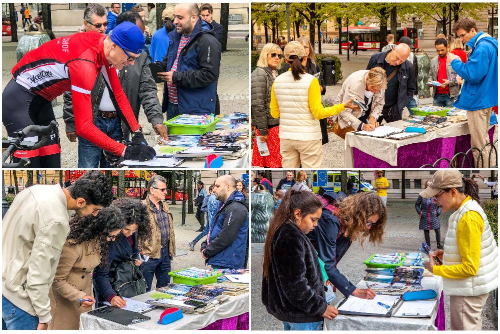 图3:瑞典民众在征签簿上签名,表示支持法轮功学员反迫害。