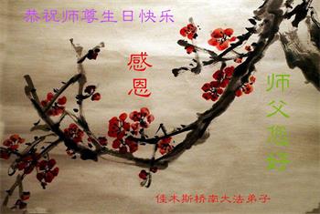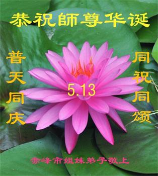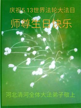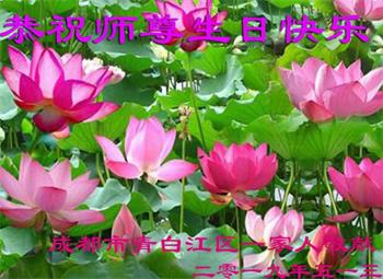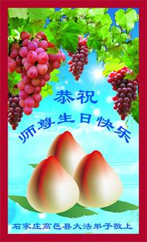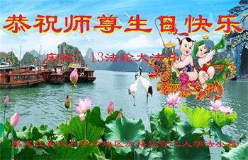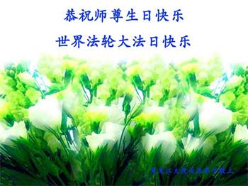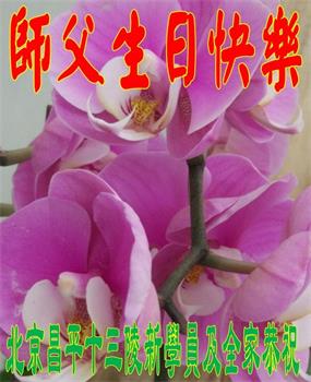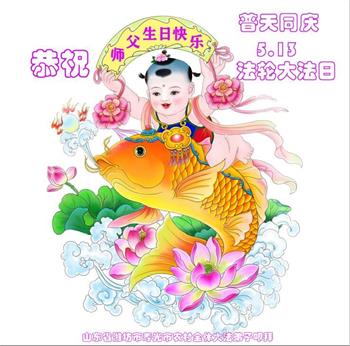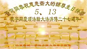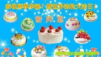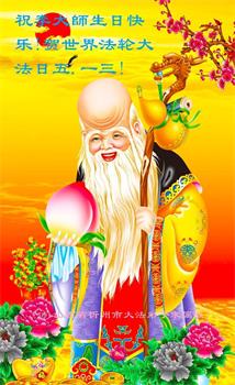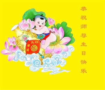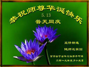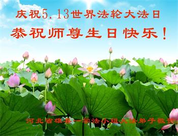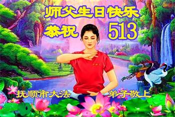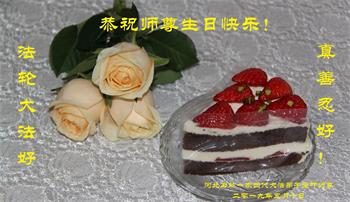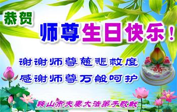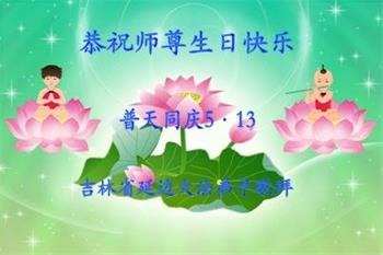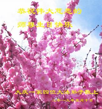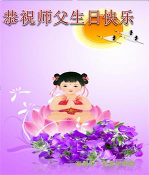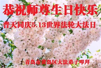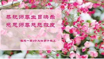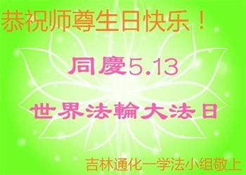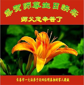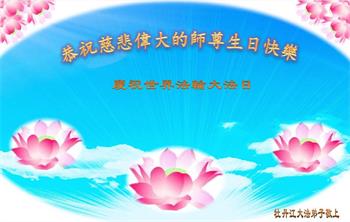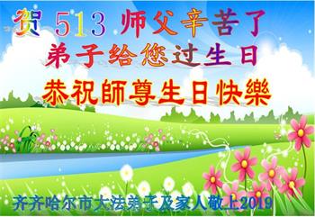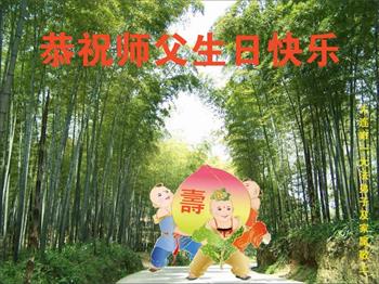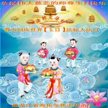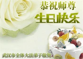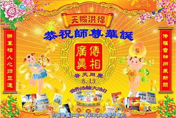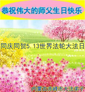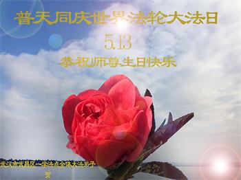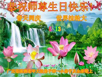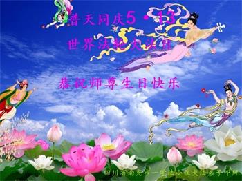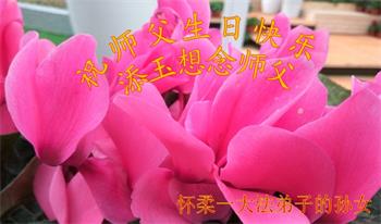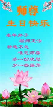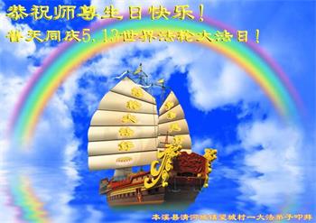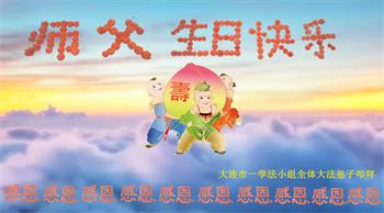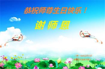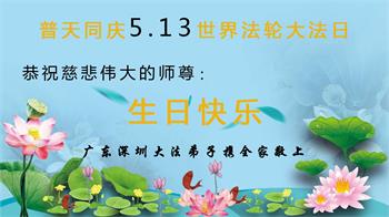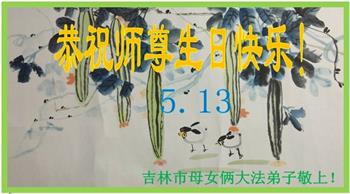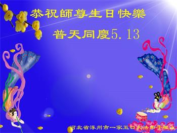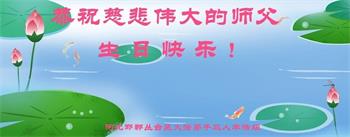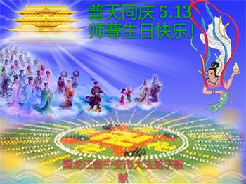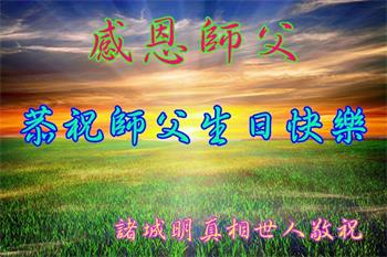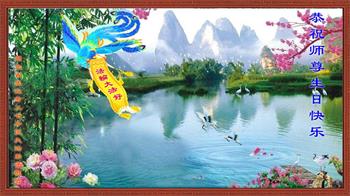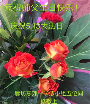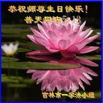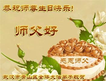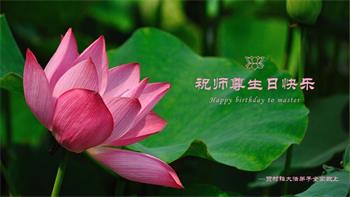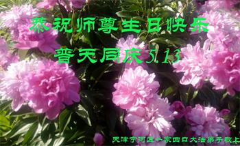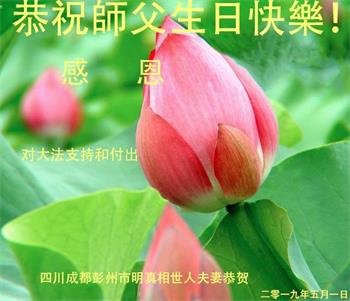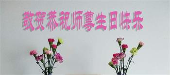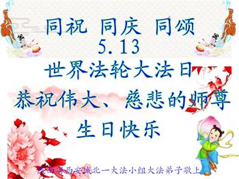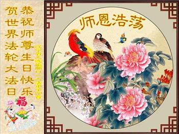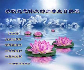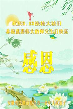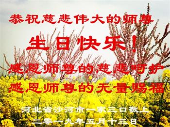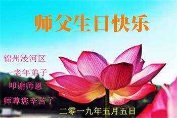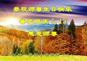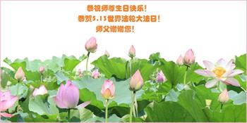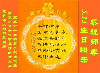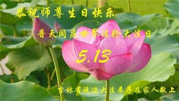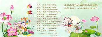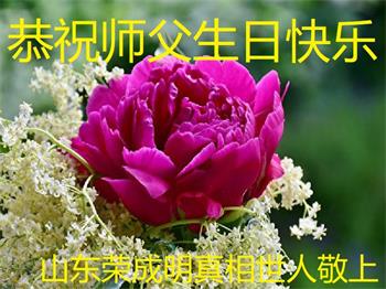 胡先生眼圈泛红地说:“我不会讲话,我真的感恩师父!庆祝五一三,我祝师父生日快乐!”