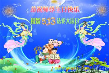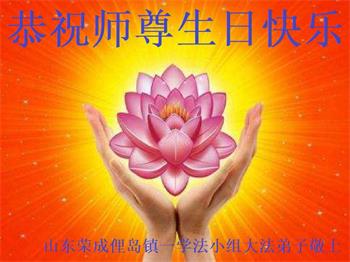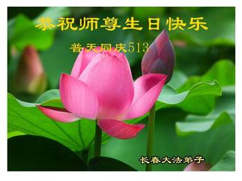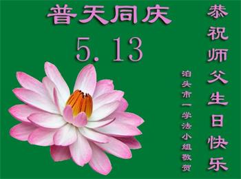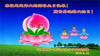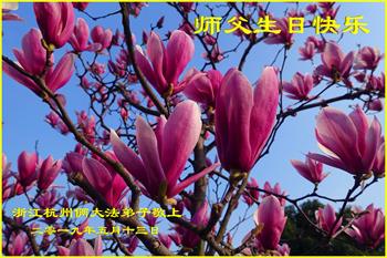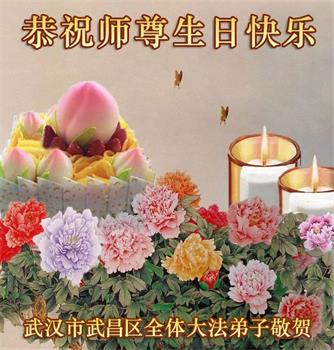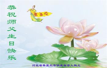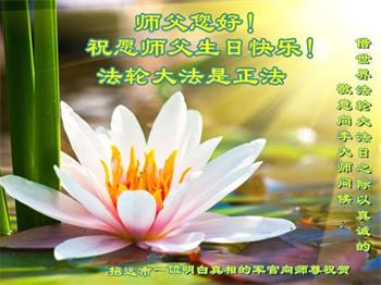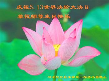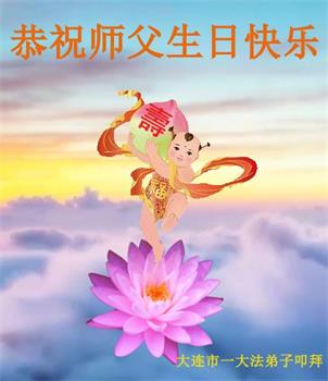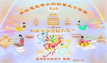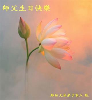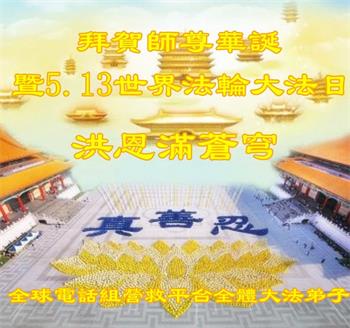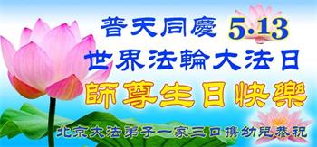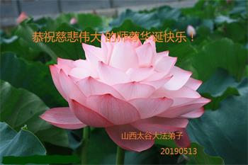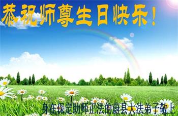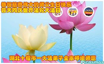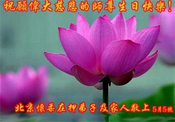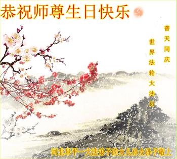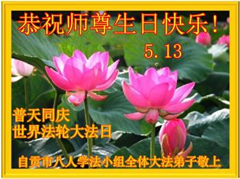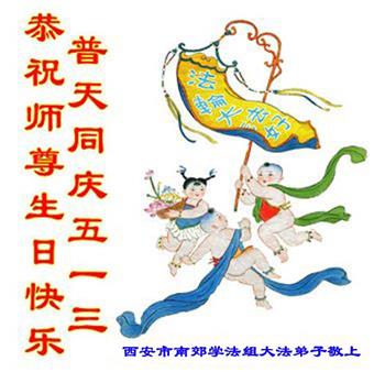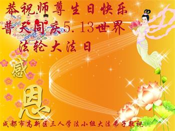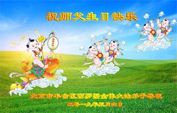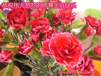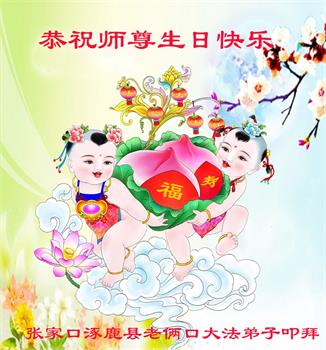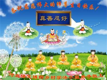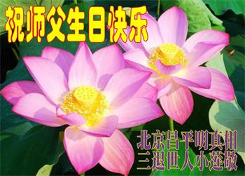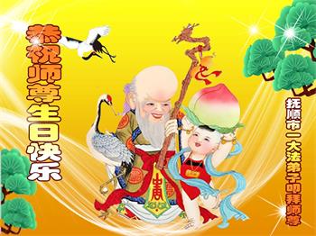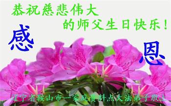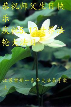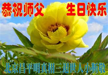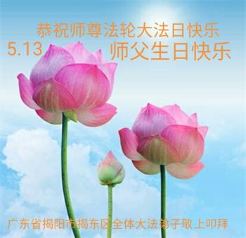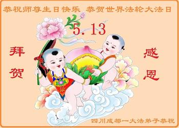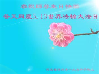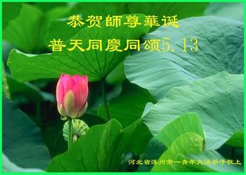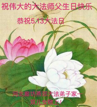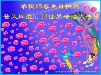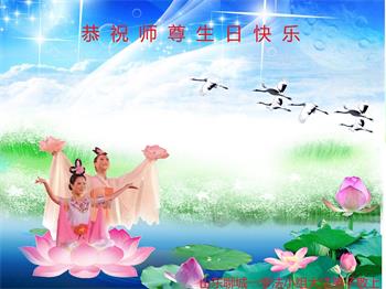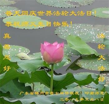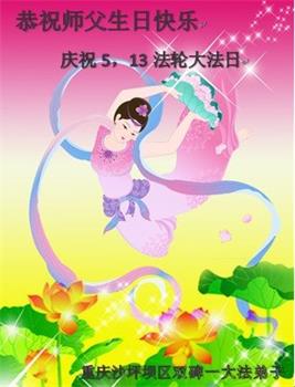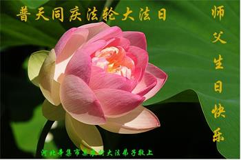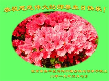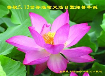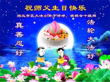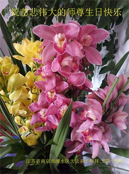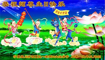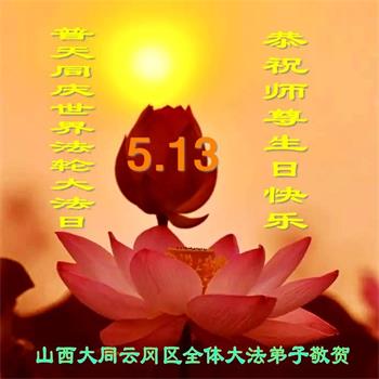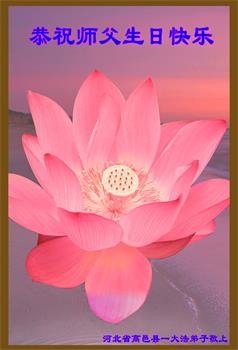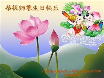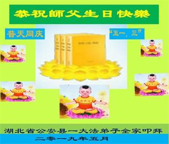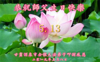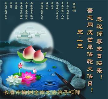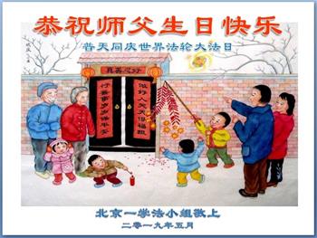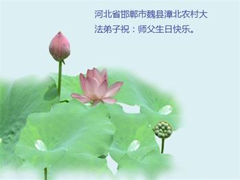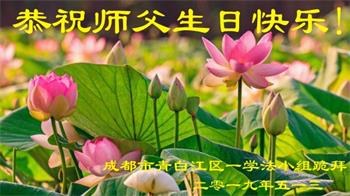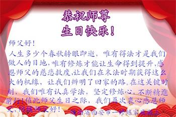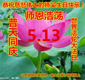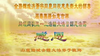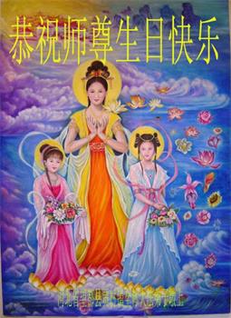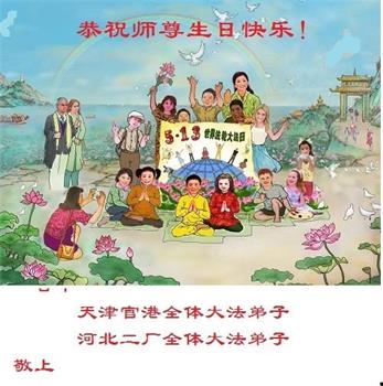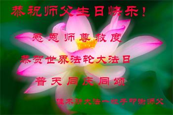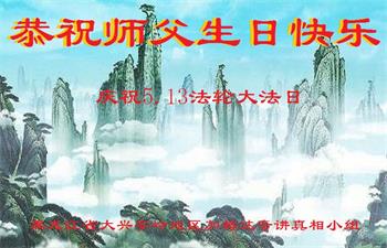 胡先生眼圈泛红地说:“我不会讲话,我真的感恩师父!庆祝五一三,我祝师父生日快乐!”