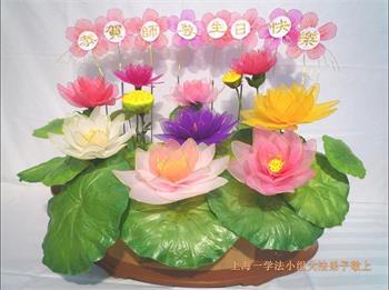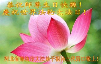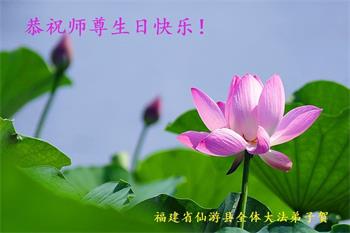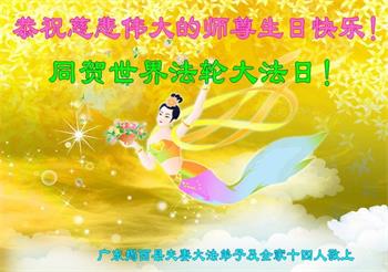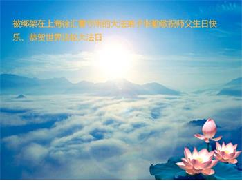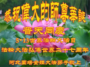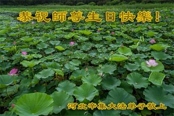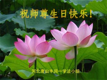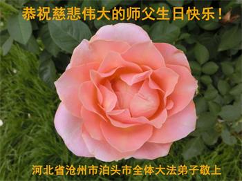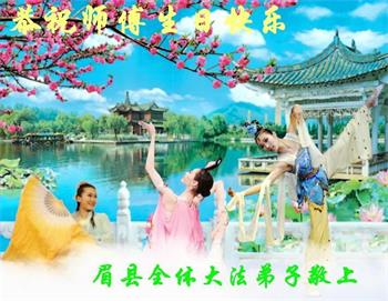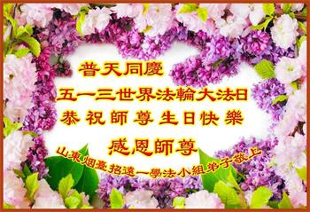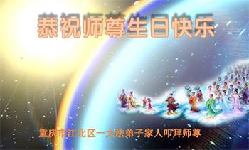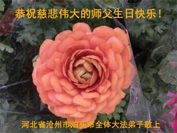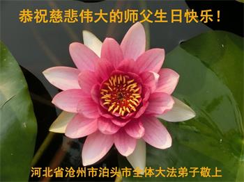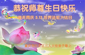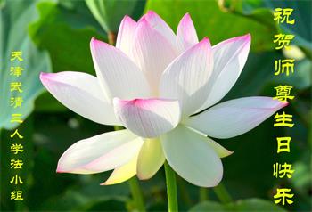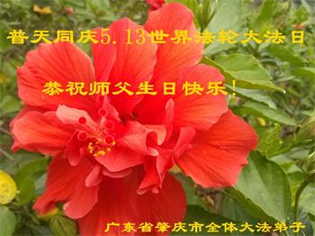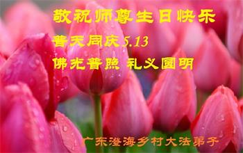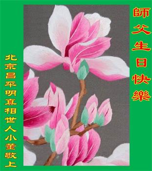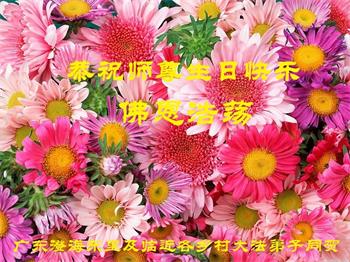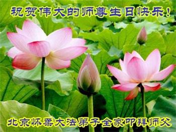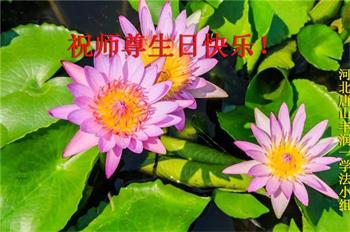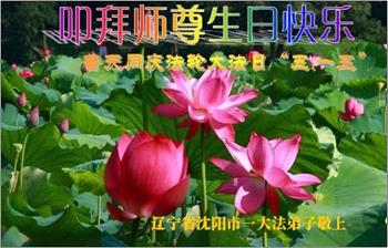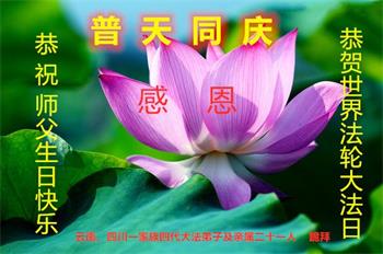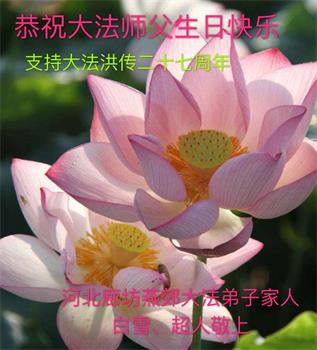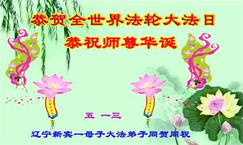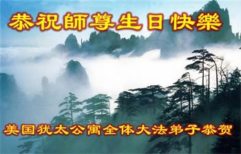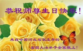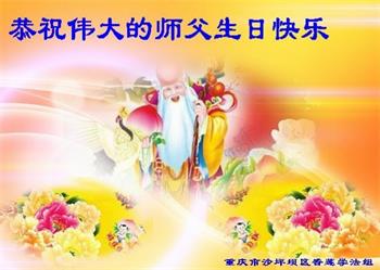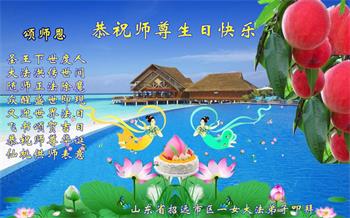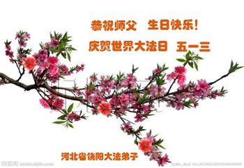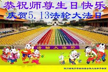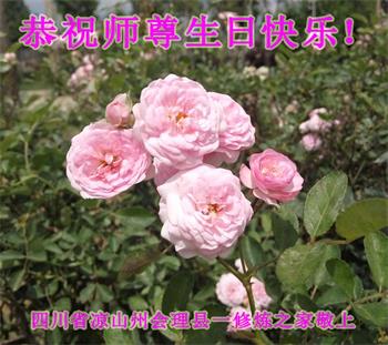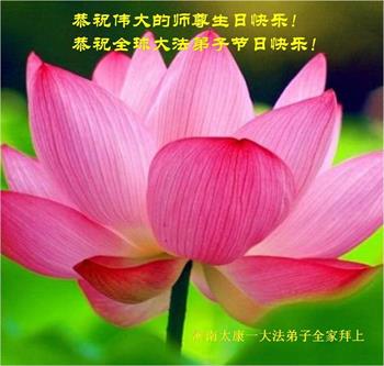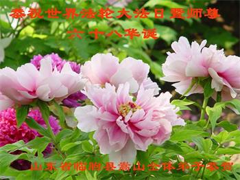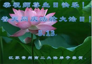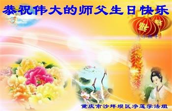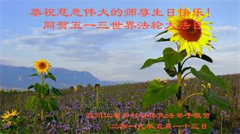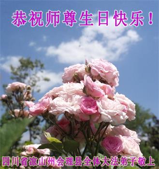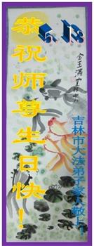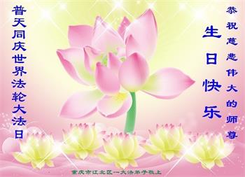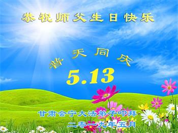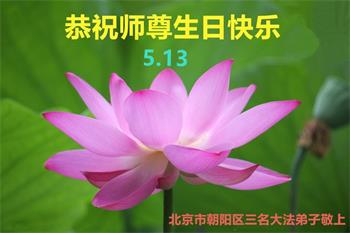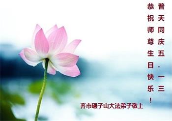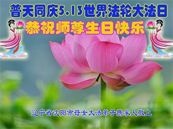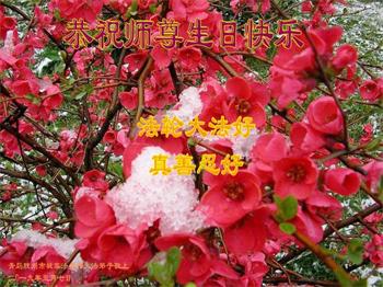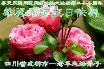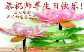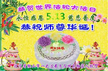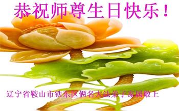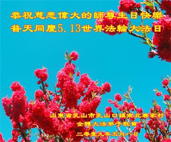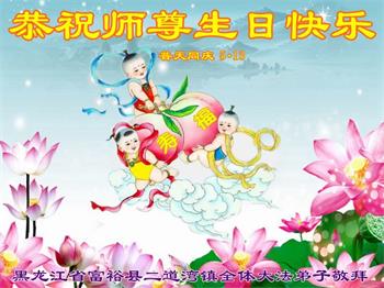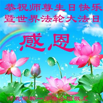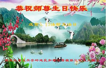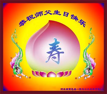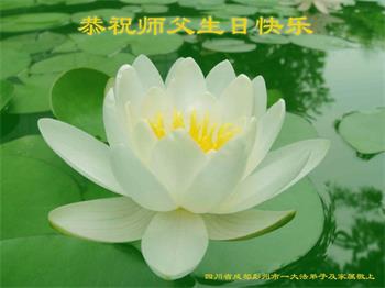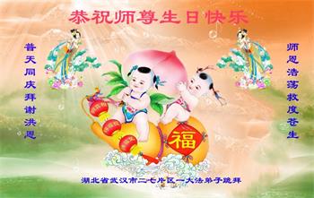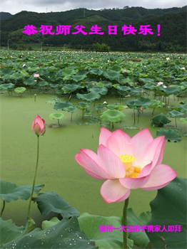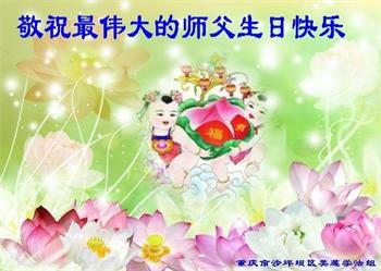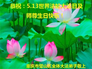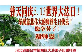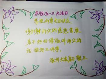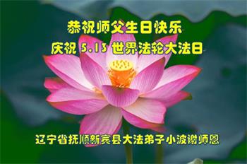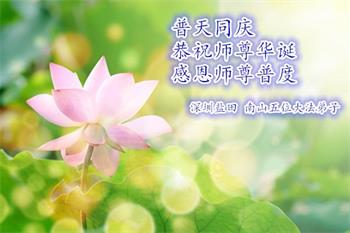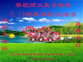 胡先生眼圈泛红地说:“我不会讲话,我真的感恩师父!庆祝五一三,我祝师父生日快乐!”