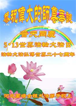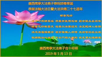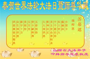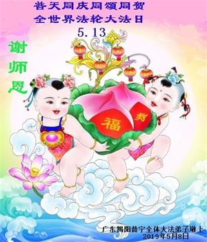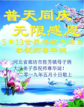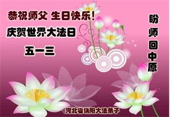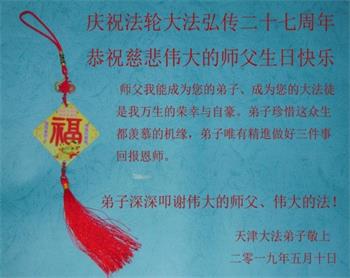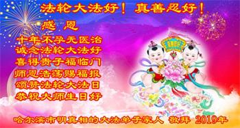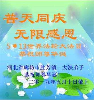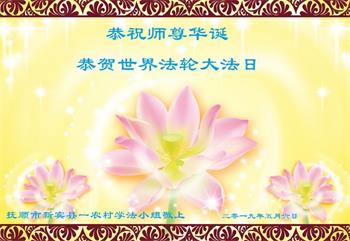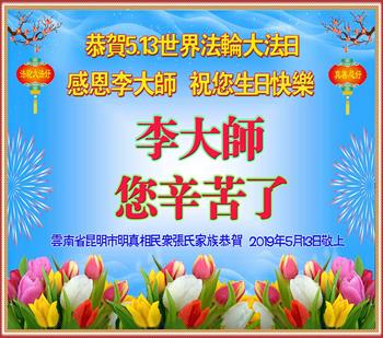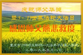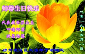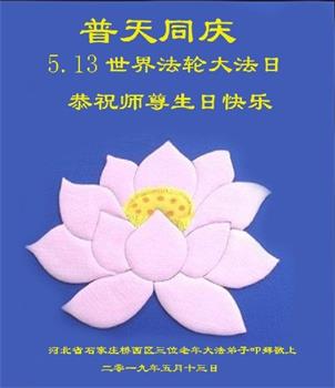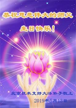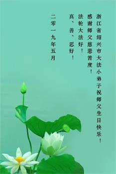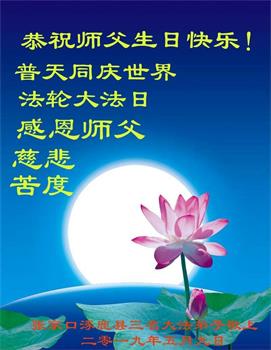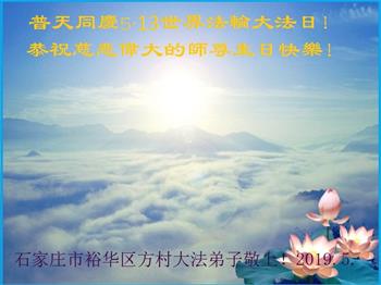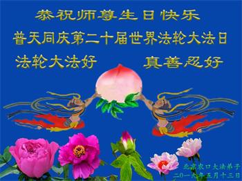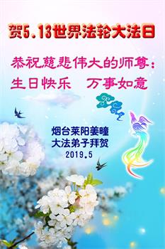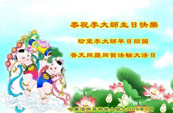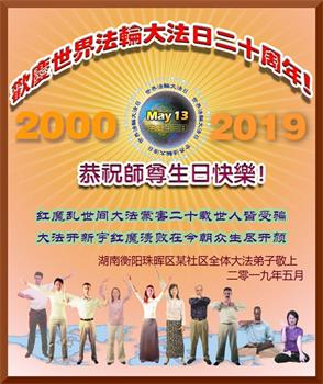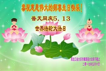 【明慧网二零一九年五月十二日】(明慧网记者综合报道)在第二十届世界法轮大法日到来之际,中国各个领域的人士发来贺信,恭祝李大师生日快乐!恭祝世界法轮大法日!在大法弟子们一如既往的努力下,越来越多的中国百姓明白了法轮大法好,钦佩大法弟子在巨难中表现出的坚忍品格、慈悲善良的胸怀;中共二十年来针对法轮大法的污蔑宣传,没有蒙住中国民众的双眼。