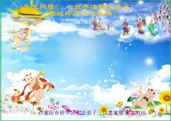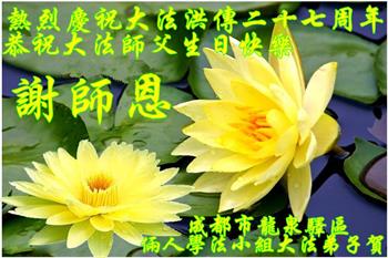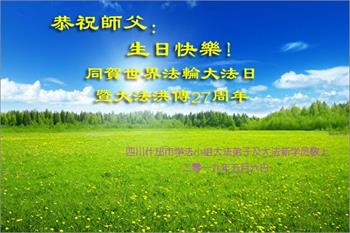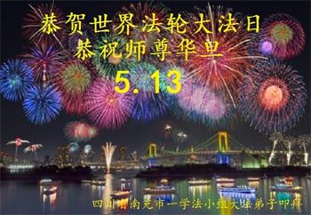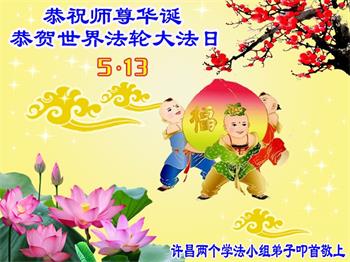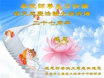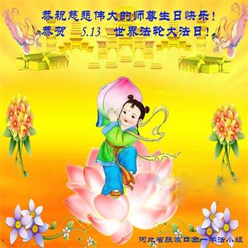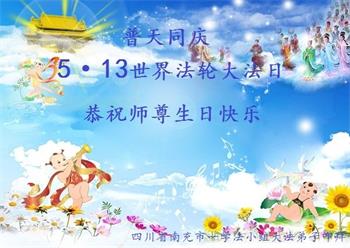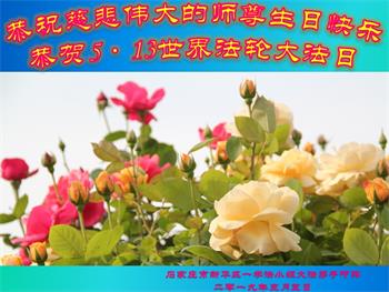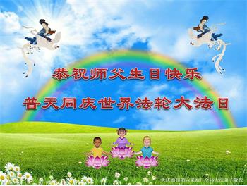十二岁的荣荣在大法中修炼已有八年的时间了。她和十岁的妹妹最喜欢在明慧班里和小朋友们一起学法,交流修心去执著的心得体会。每天晚上姐妹俩也会和妈妈一起学法半小时。师父的生日要到了,在大法中受益的小姐妹一同恭祝师尊生日快乐!