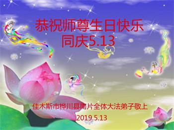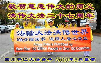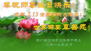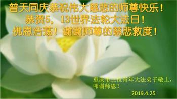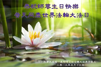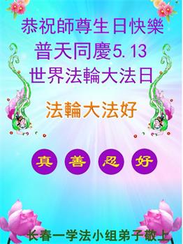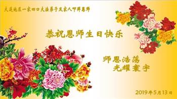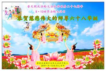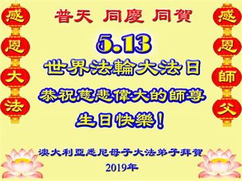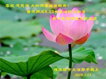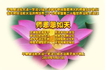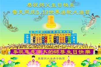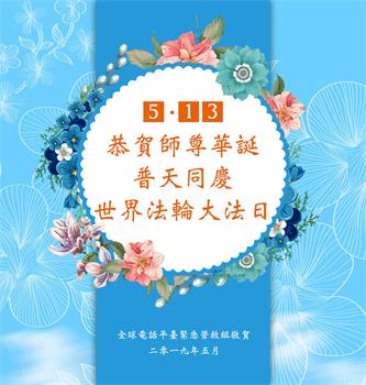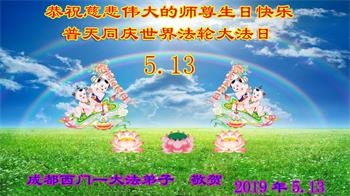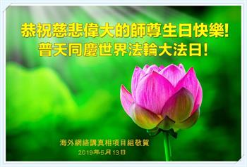【明慧网二零一九年五月十二日】二十七年前的五月十三日,李洪志师父将法轮大法公开传世,“真、善、忍”的法理为全球五大洲不同族裔的上亿修炼者带来新生,也为他们的家庭和身处的社会带来祥和与美好。五月十三日也是师父的生日,每年此季,世界各地的法轮功学员都会举办庆典向师尊恭祝华诞。