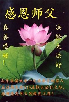 一位山东烟台招远市市民说,他一家十口人,“全家所有的人都相信大法是好法、正法,对修炼者本人和家庭及国家都是有利的。我们也经常帮助大法弟子发大法真相资料救人”。