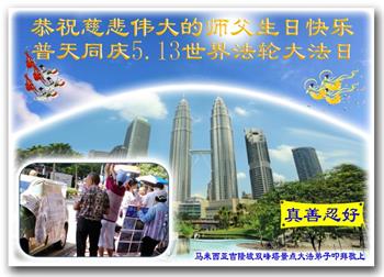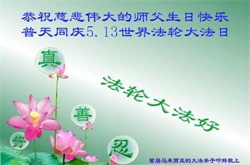 新加坡人七十岁的胡先生朴实的脸上挂着感动,他说:“我太太修炼法轮功,身体健康了,我也受益很多。我会继续支持太太炼功。”“遇到难题时,我也会喊师父,念‘法轮大法好,真善忍好’。祝师父生日快乐!”