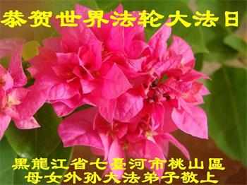 就在这天,女儿忽然想起附近公园有一些人在炼法轮功,就让大家连抬带拽地把她带到了炼功点。她一抱轮,顿觉一阵热流通透全身,她立刻认准了这个功法,从此修炼法轮功。二十四年走过来,她再没吃过药,也没去过医院,因为她已经无病一身轻。