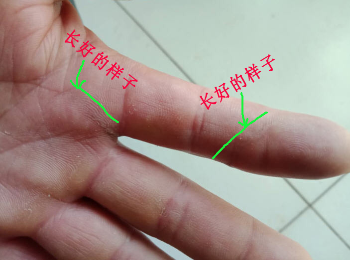 事出那几天,邻居几次要用车拉我去医院,手术、接骨、输液,担心发炎了,并说:某某就是破伤风死的啊!没钱我给你拿上。我都不为所动,还开玩笑说:“你别看这血纸硬壳,到时就跟松花蛋皮一样,用小木棍一敲开,里面光光的。”也就是这一念,刚好两个月时,血纸壳脱掉了,除了看到伤痕外,还真象我说的那样:手指光光的。真是好坏出自修炼人的一念啊!