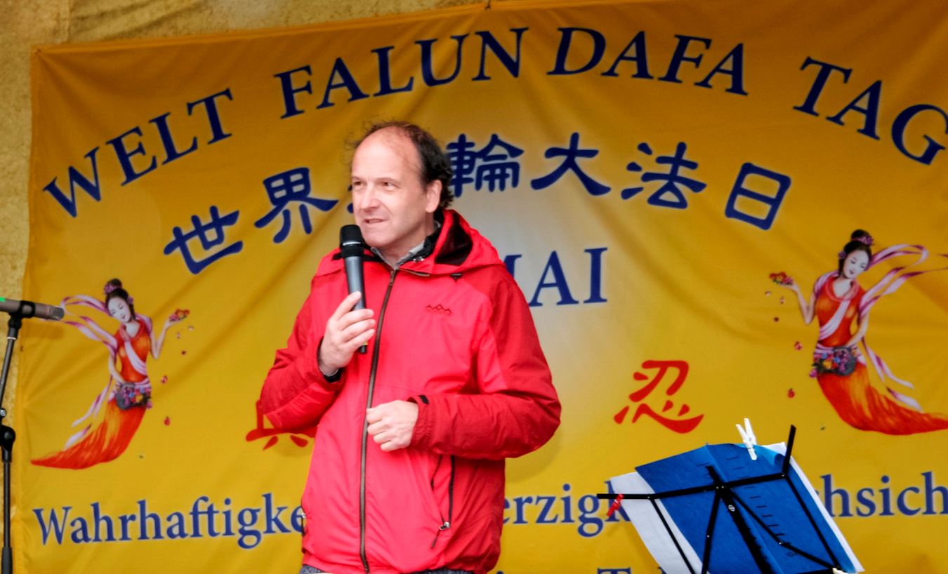 “我学了第一套功法,之后开始读了《转法轮》,然后我就开始了修炼。”他说,“一开始对我来说挺难理解的,不过我坚持不断的学法,学下去。年初我参加了德国法会,感到整个世界观都改变了。”