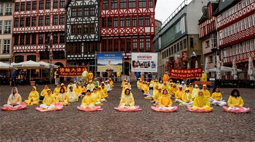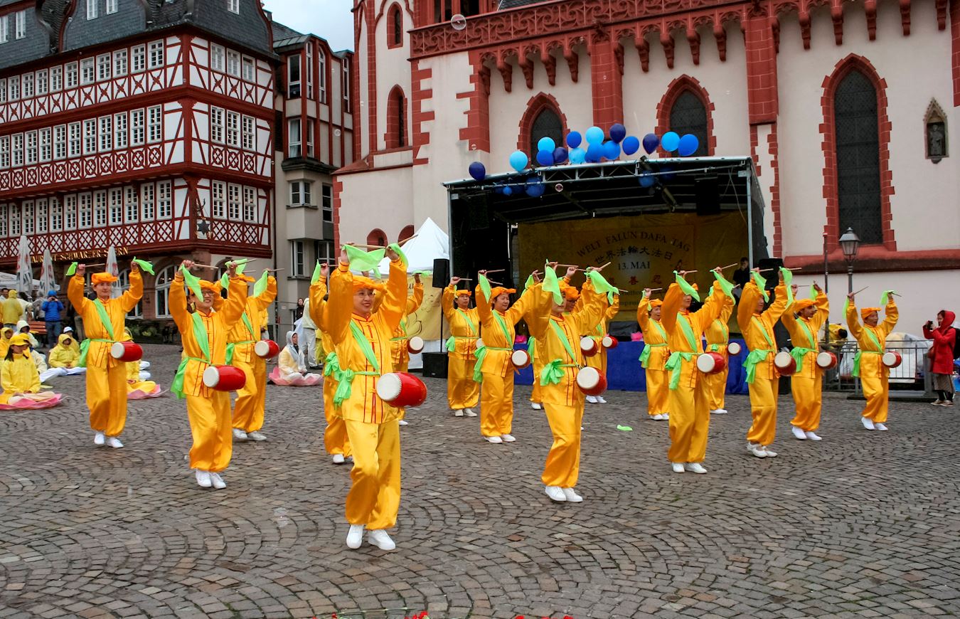 【明慧网二零一九年五月十三日】(明慧记者德祥德国法兰克福报道)为了庆祝法轮功弘扬世界二十七年暨第二十届世界法轮大法日,并恭贺法轮功创始人李洪志先生六十八华诞,二零一九年五月十一日,来自德国各地的法轮功学员云集中部最大城市法兰克福的罗马广场(市政厅所在地),举办了庆典活动。欧洲议员、国会议员、人权组织等政要到场祝贺。