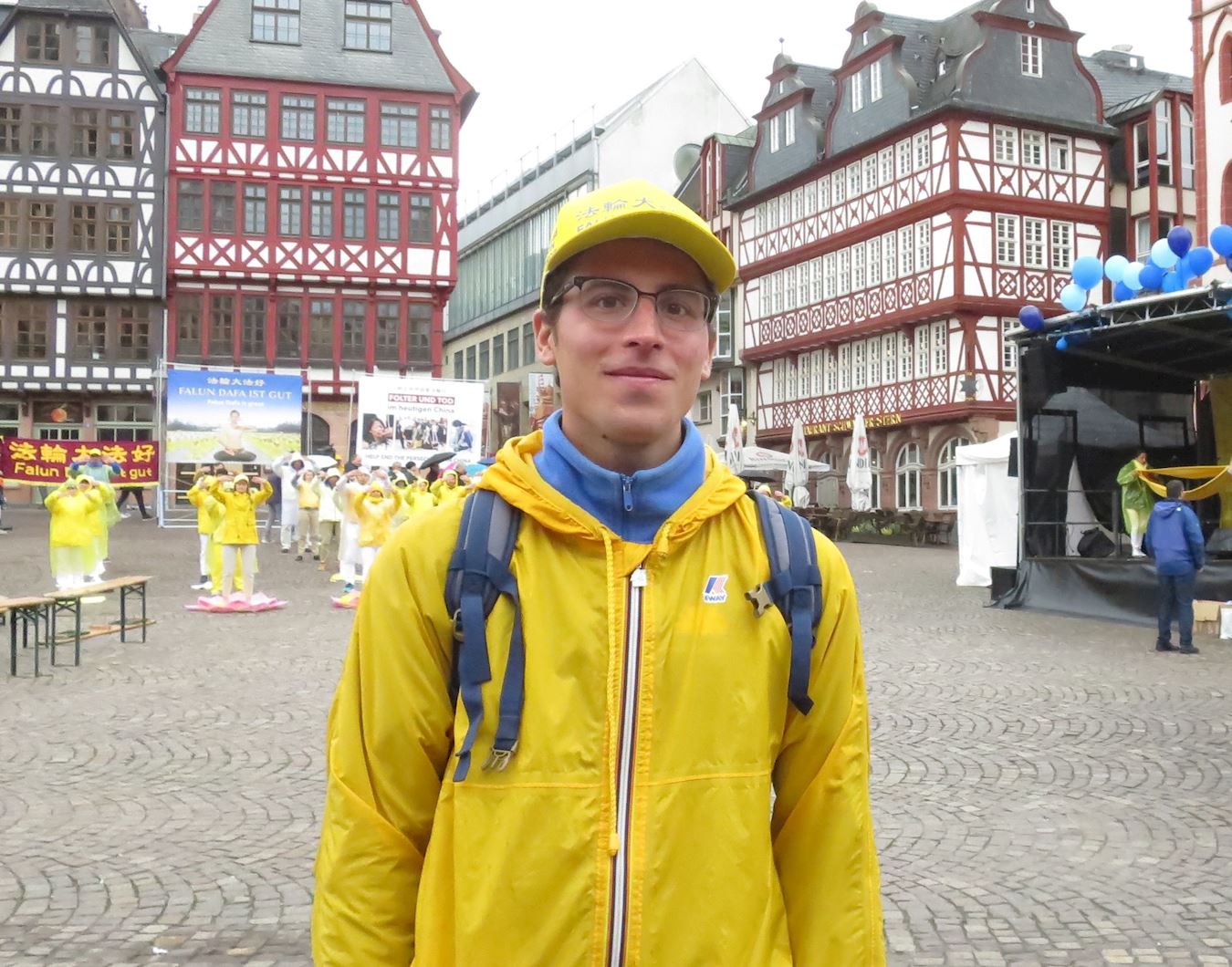 “今天是法轮大法日,我也来到法兰克福,我希望能够告诉人们真、善、忍的美好。”他说自己无法用语言来表达对师父的感激,说这话时他眼含着泪水,“自从我修炼法轮大法,自从我开始读《转法轮》,我的生活总朝着好的方向改变。有时会遇到难关,但我知道如何继续下去,一切都在朝着好的方向发展。”